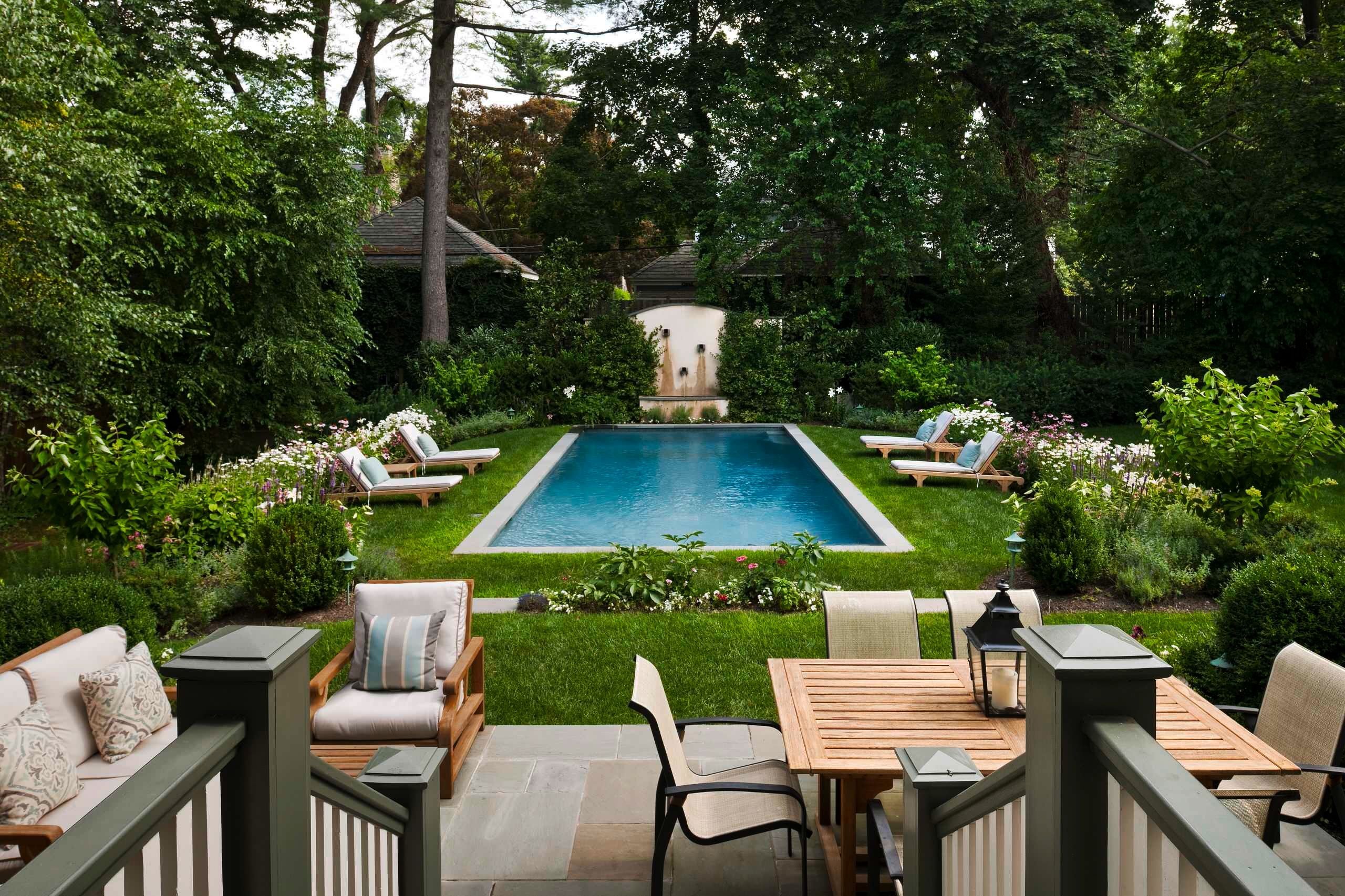 Красивый ландшафт с бассейном
