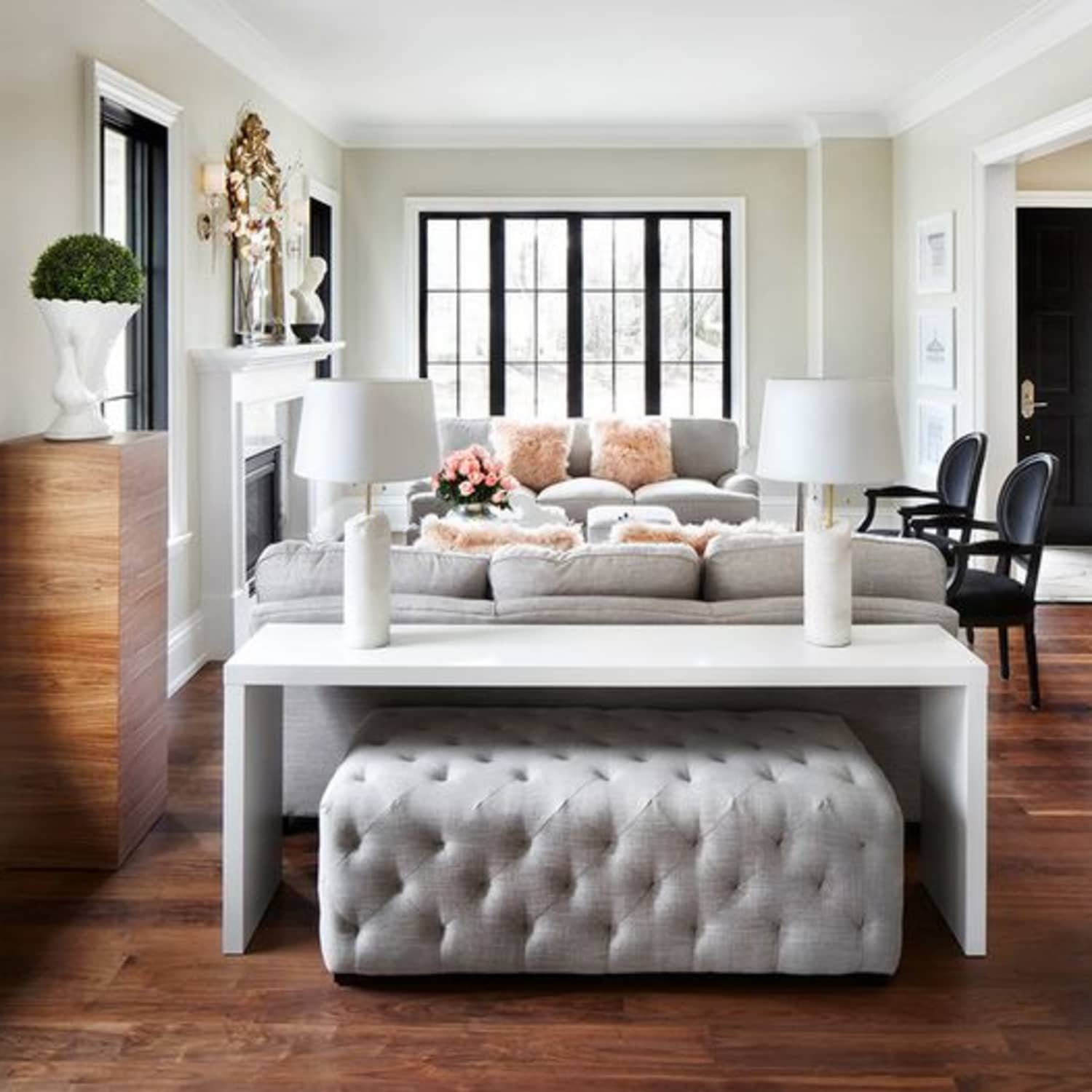 Консоль за диваном в интерьере
