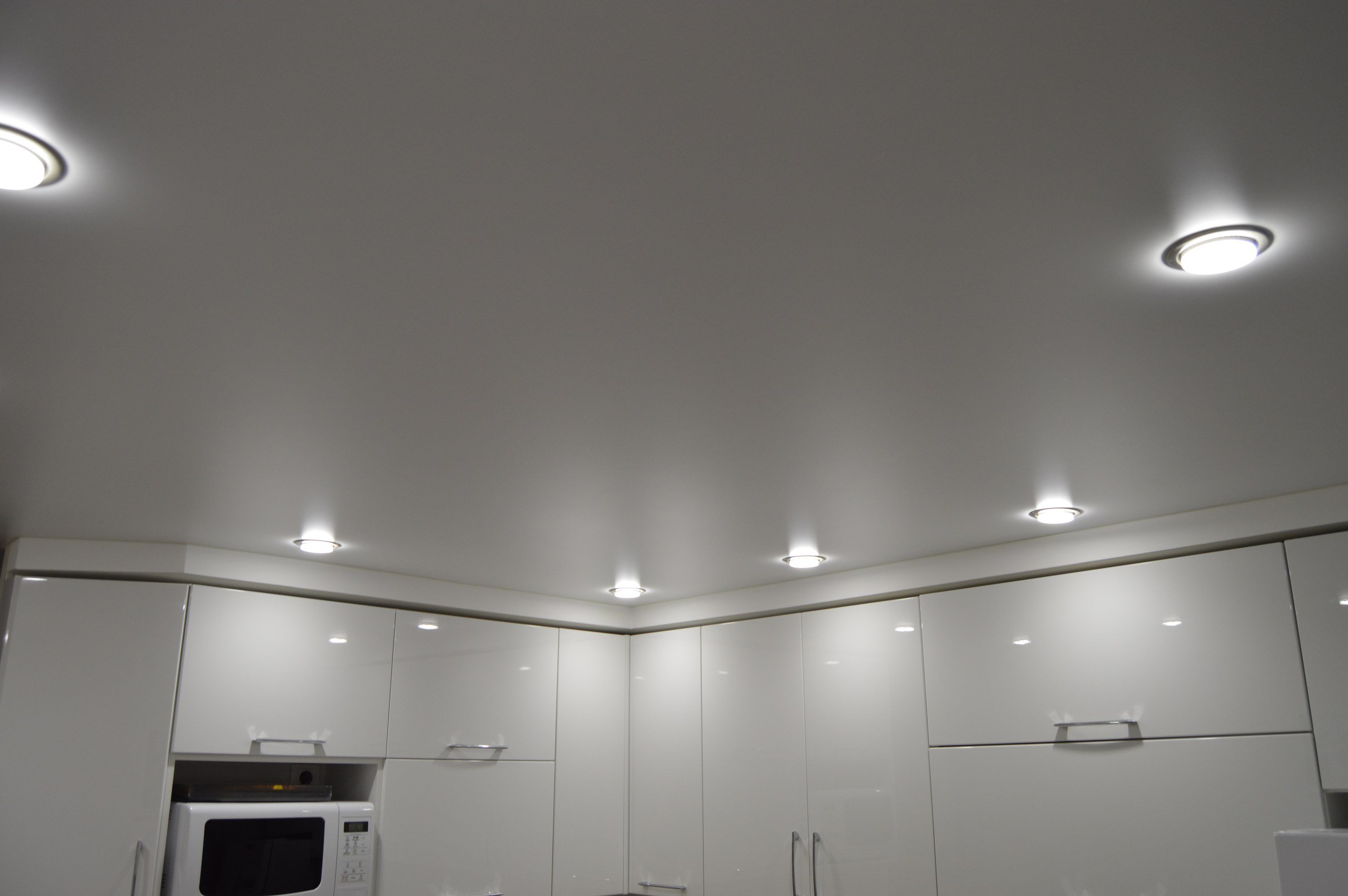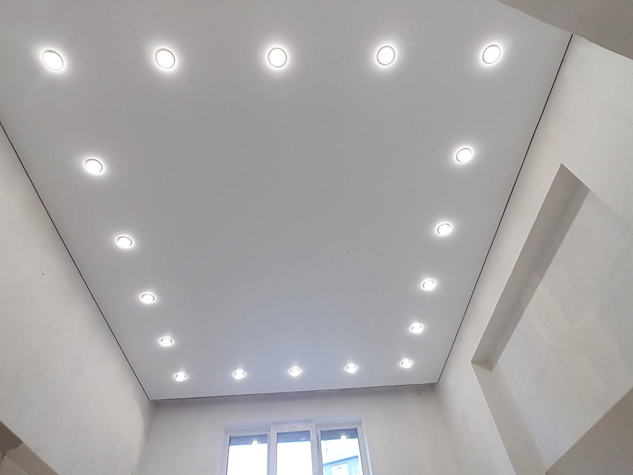 Матовый потолок с точечными светильниками