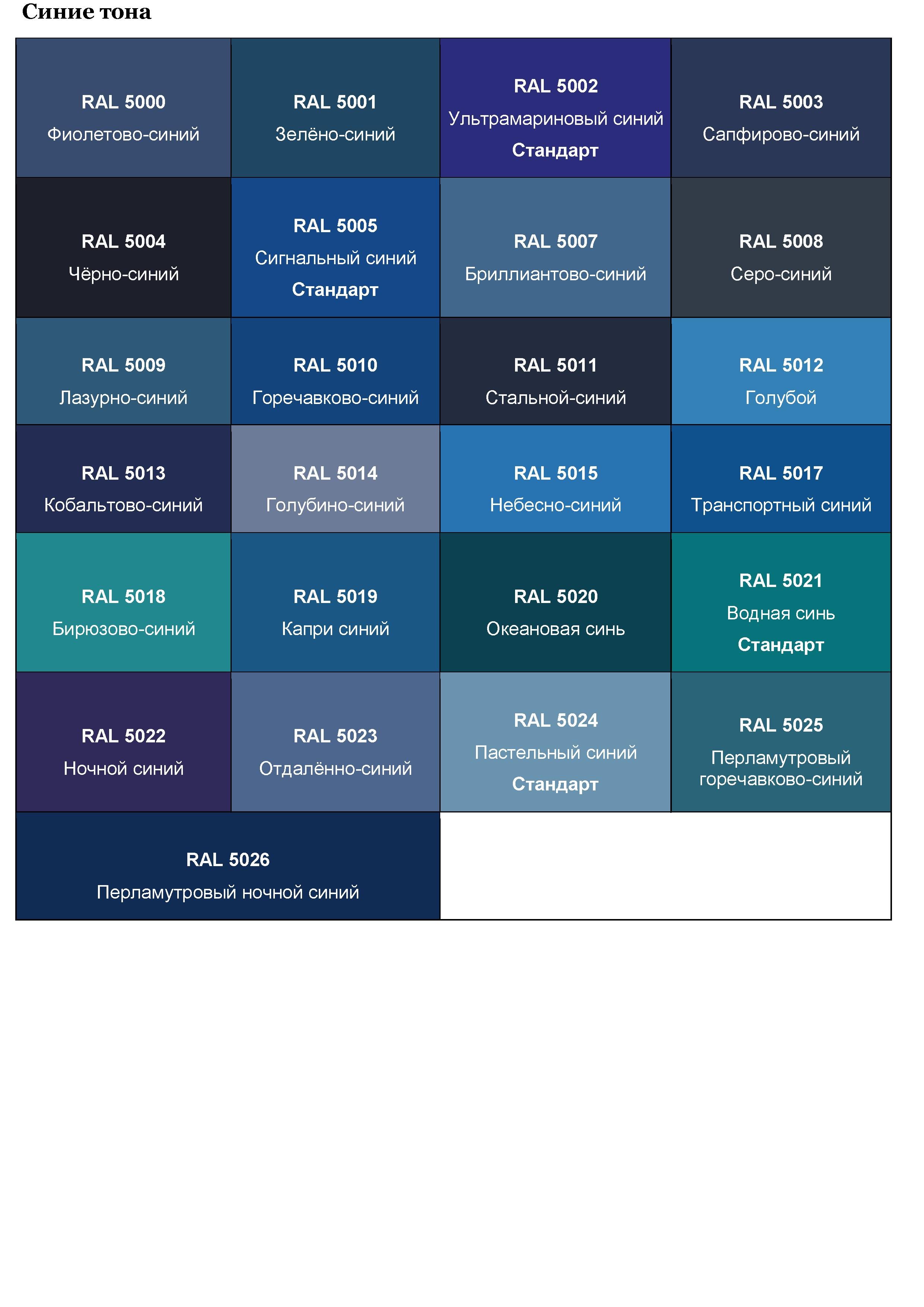 Оттенки синего таблица рал с названиями