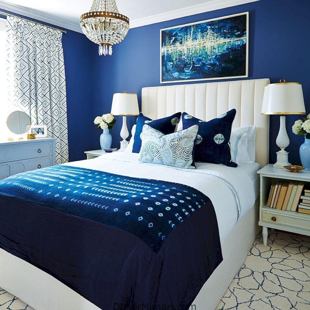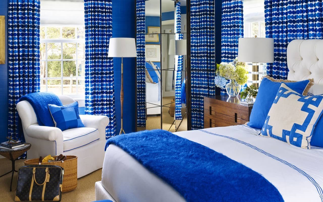Сине белая спальня