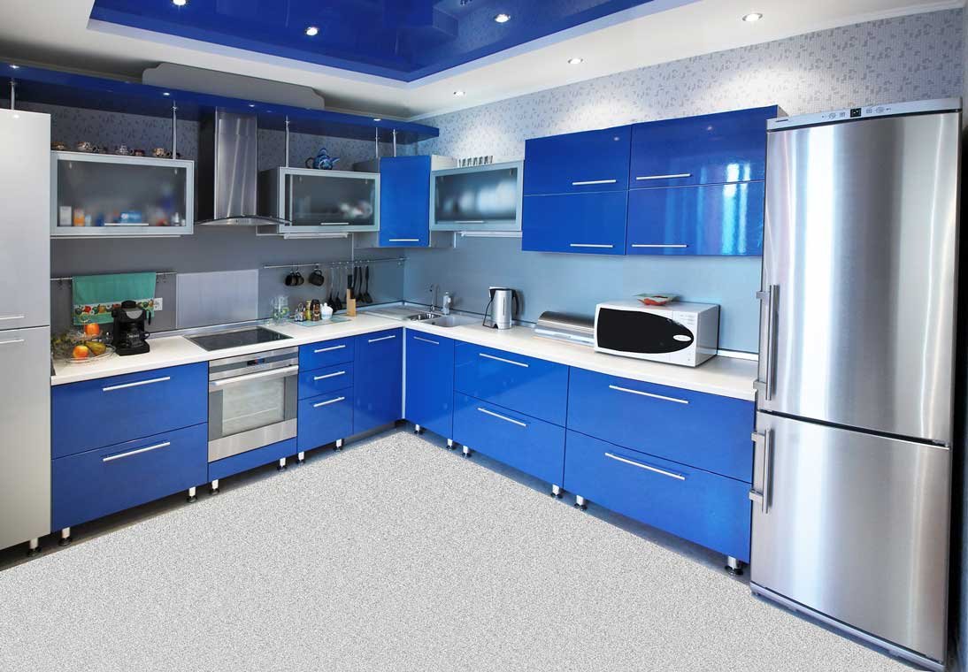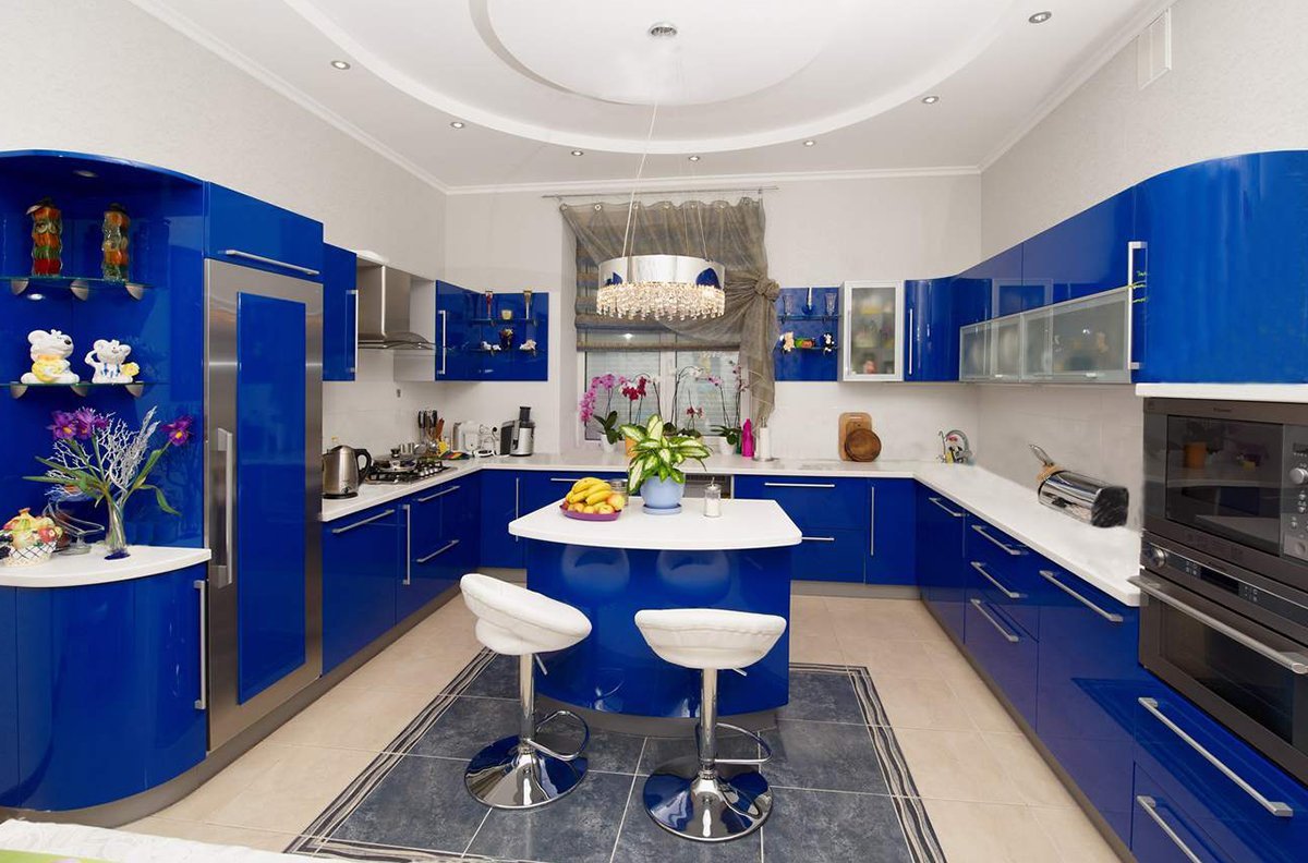 Кухонный гарнитур синего цвета в интерьере