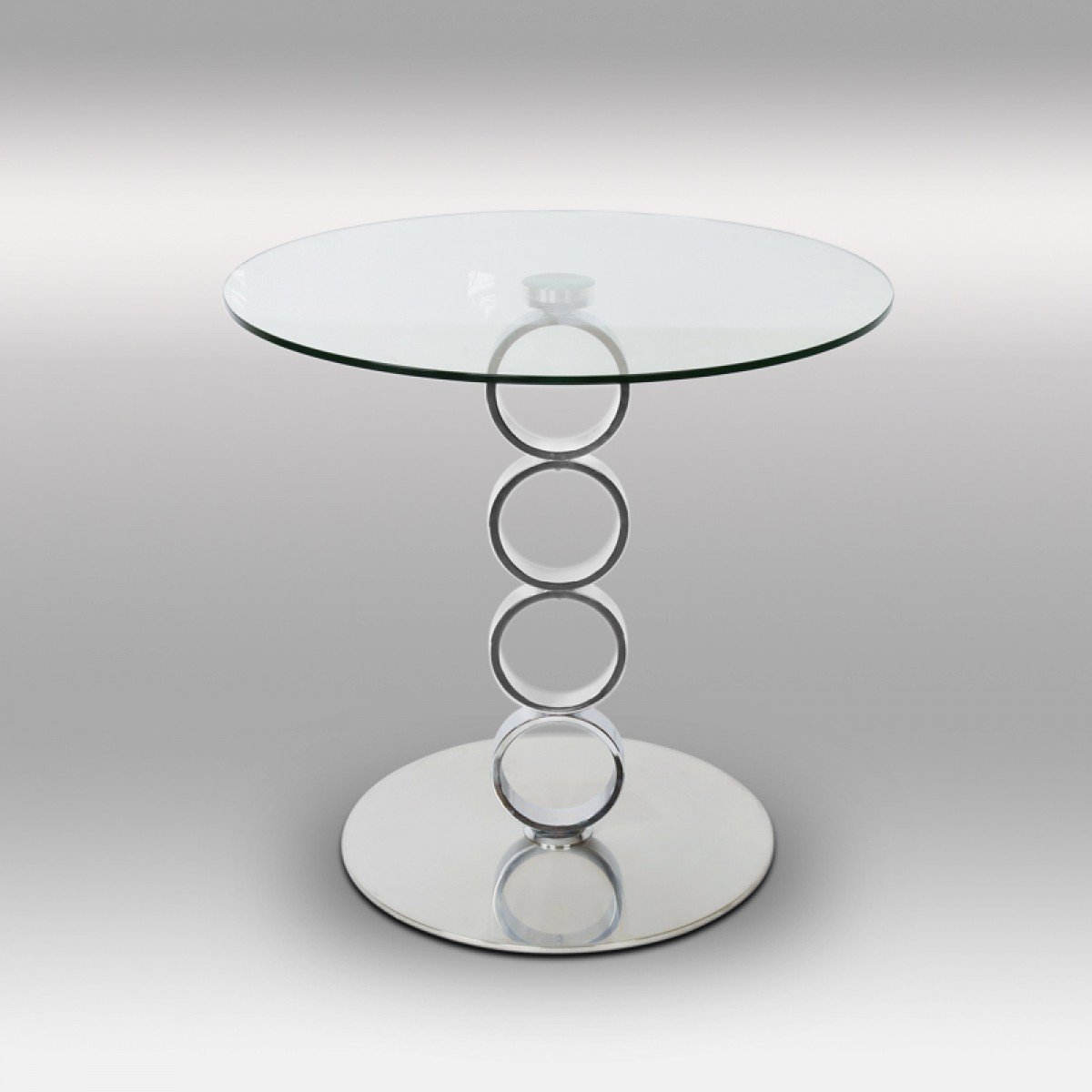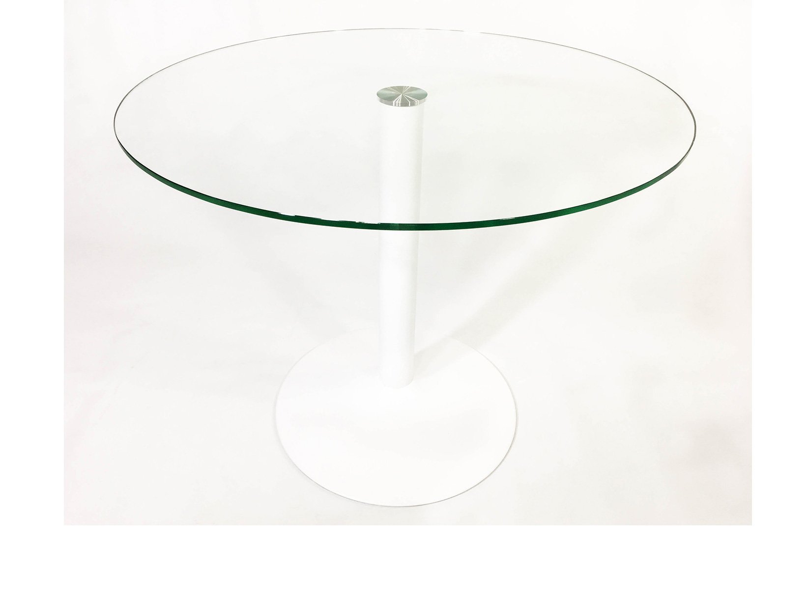 Круглый стеклянный стол Троя 18 прозрачный c белым подстольем (900х900)