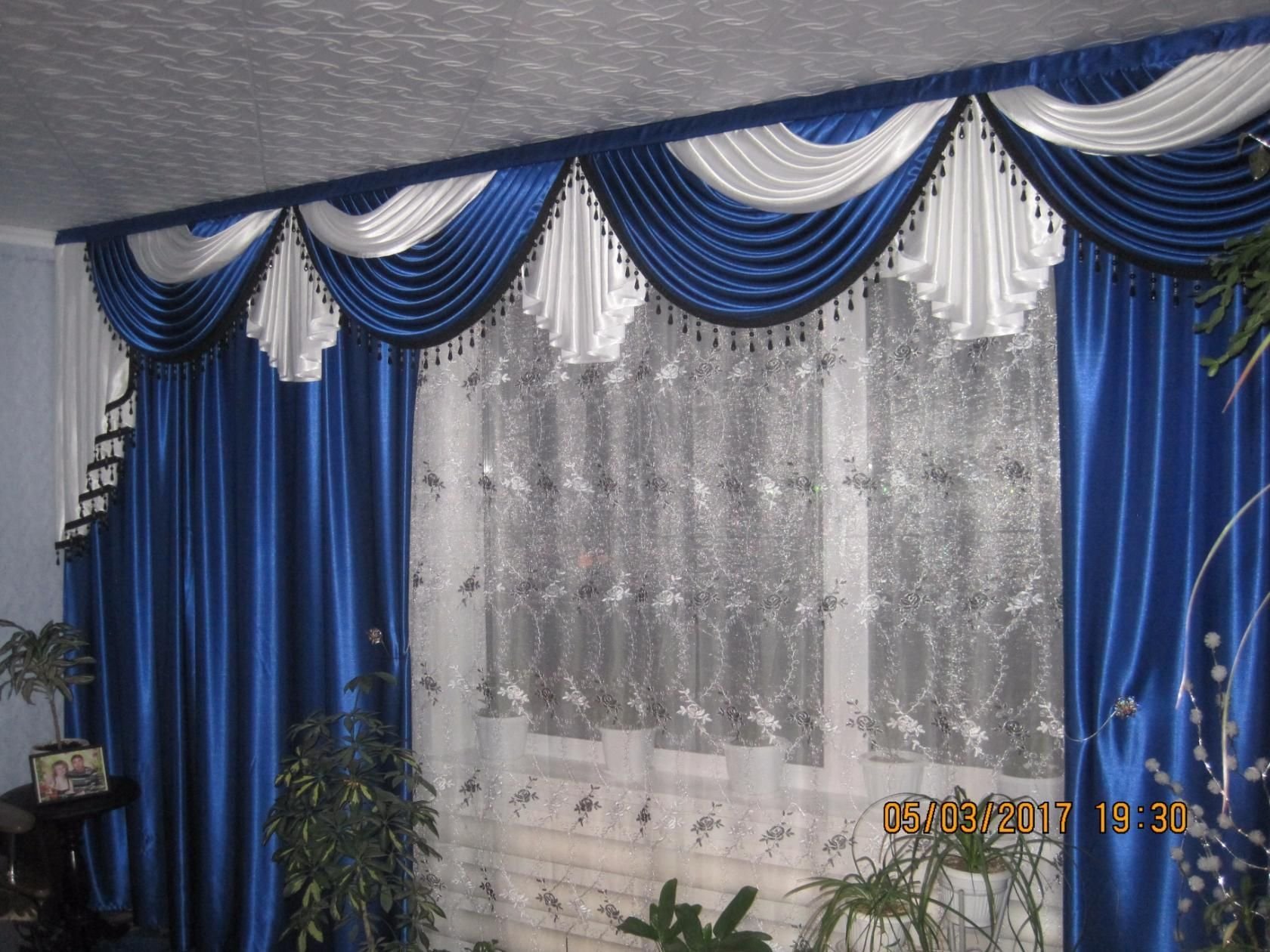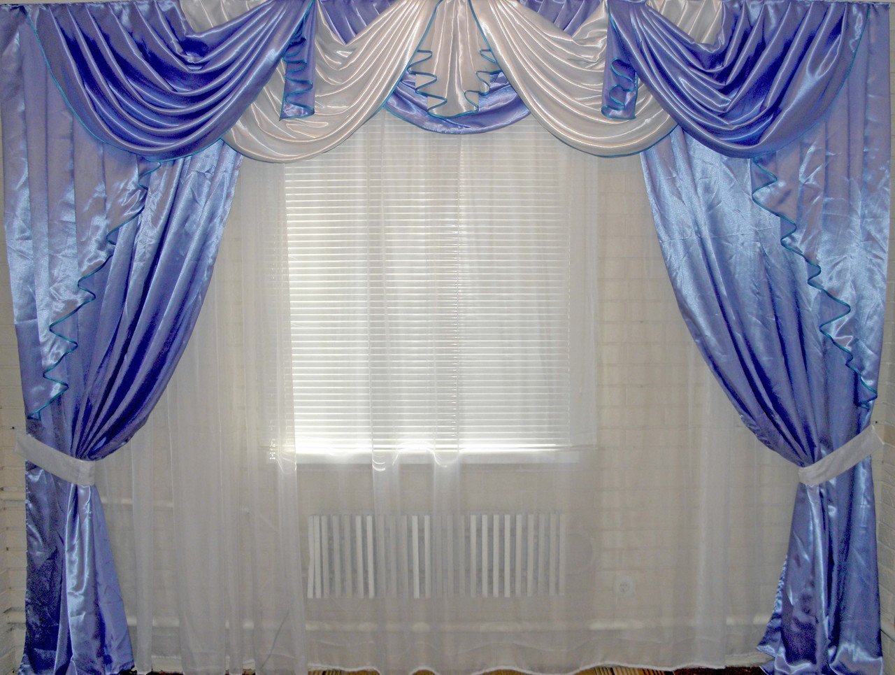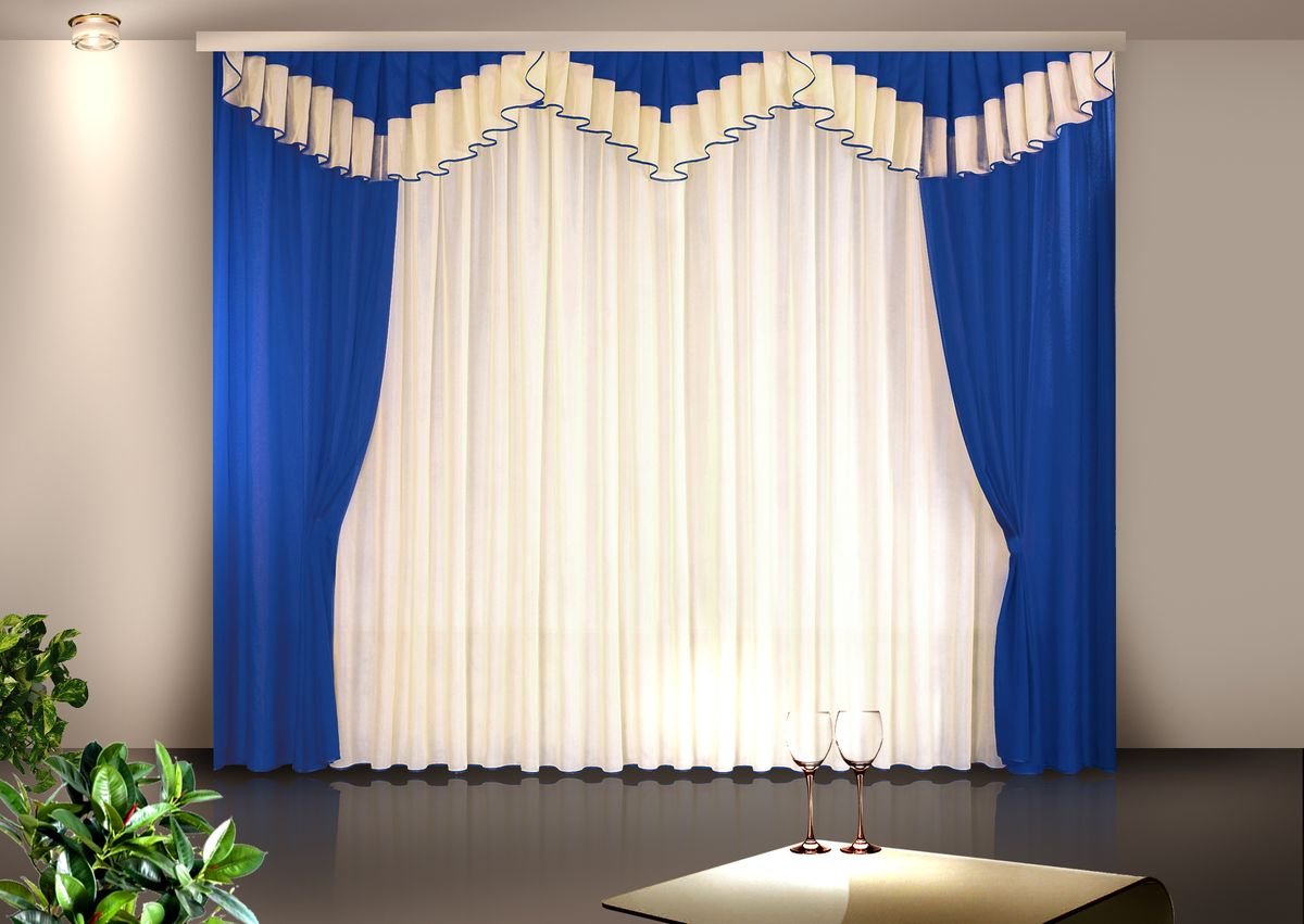 Синие шторы с ламбрекеном