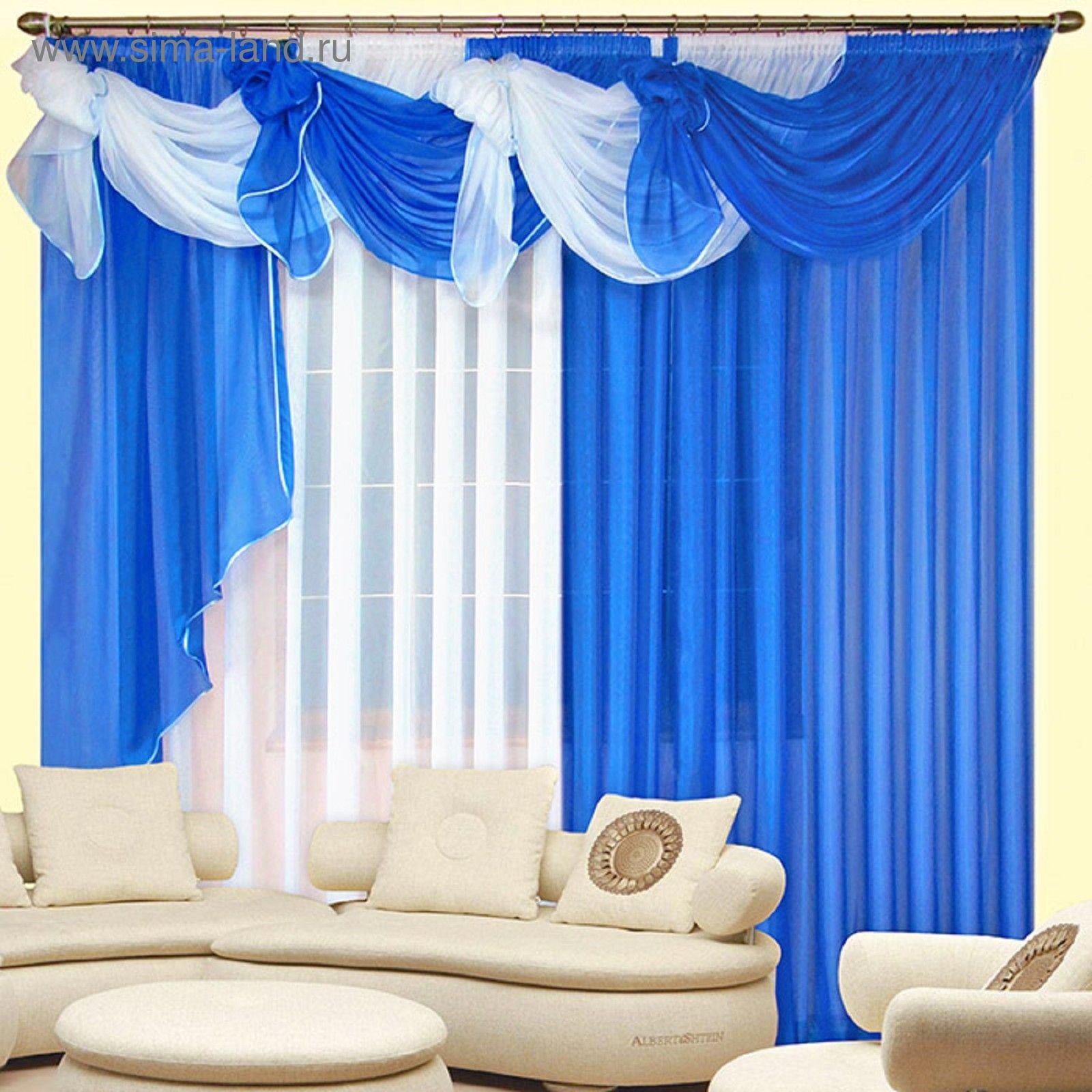 Шторы голубые с ламбрекеном в гостиную