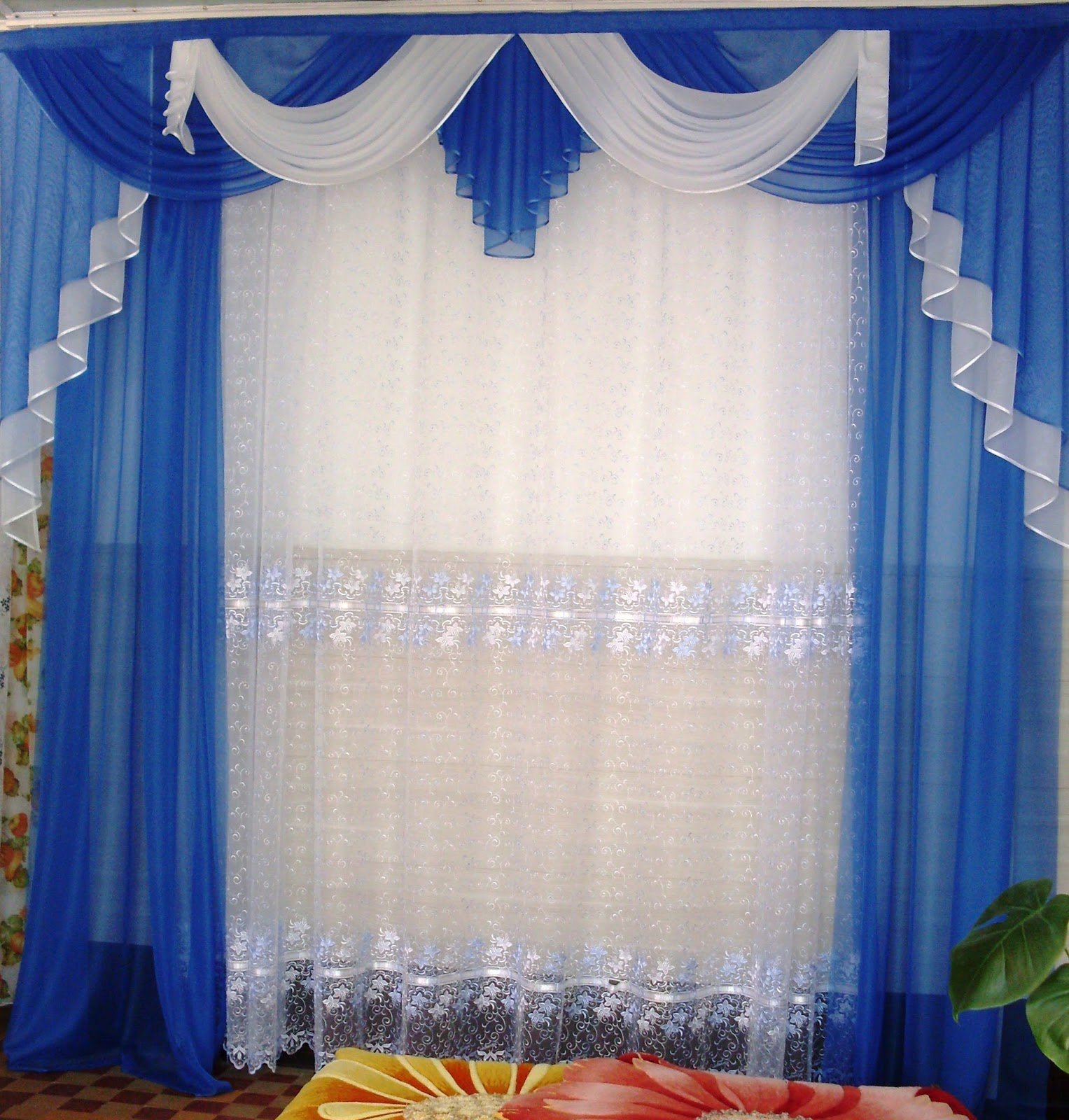 Голубой тюль с ламбрекеном