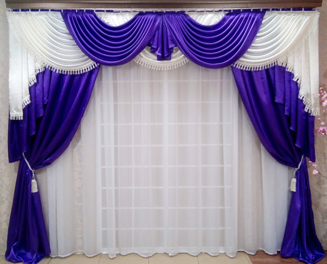 Шторы фиолетовые с ламбрекеном в зал
