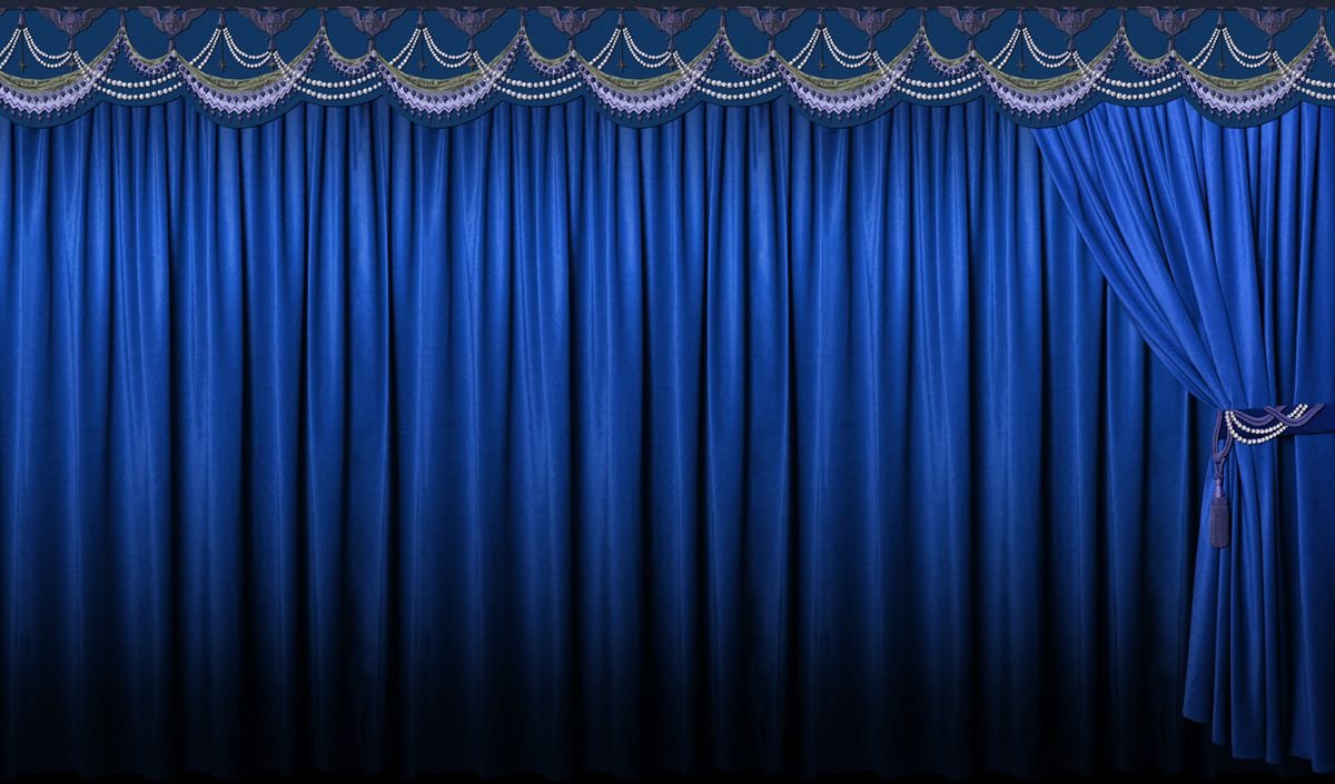 Кулисы занавес на голубом фоне