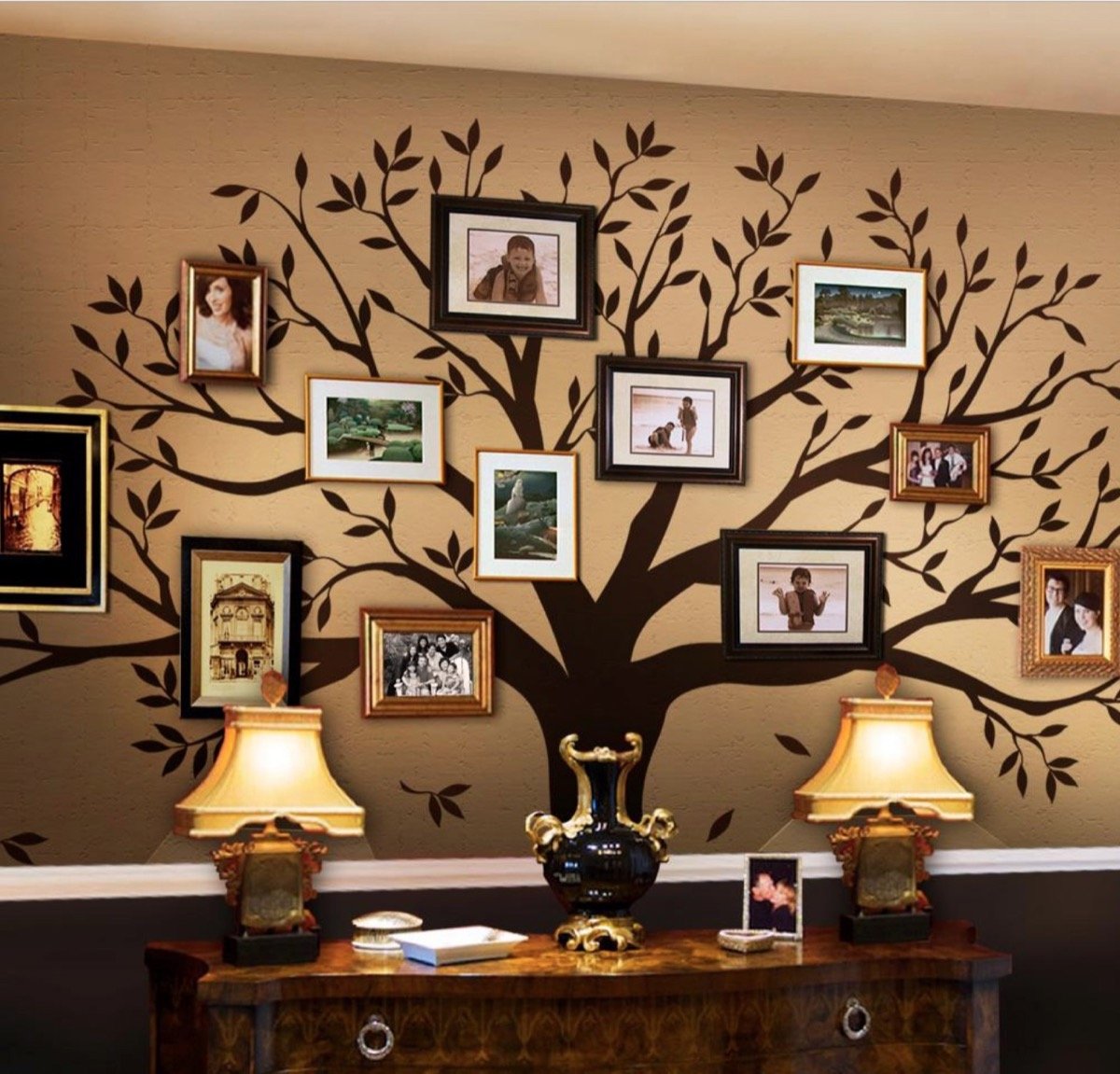 Декор на стену дерево с фоторамками