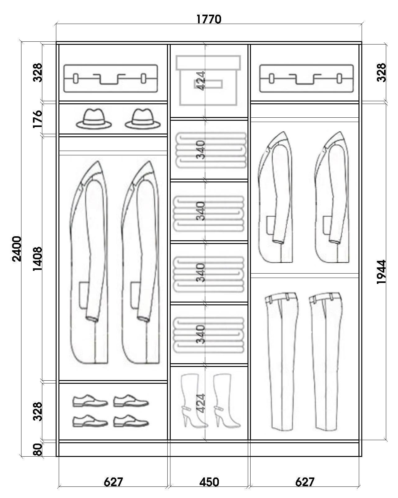 Шкаф купе ширина 2000 высота 2700 глубина 600
