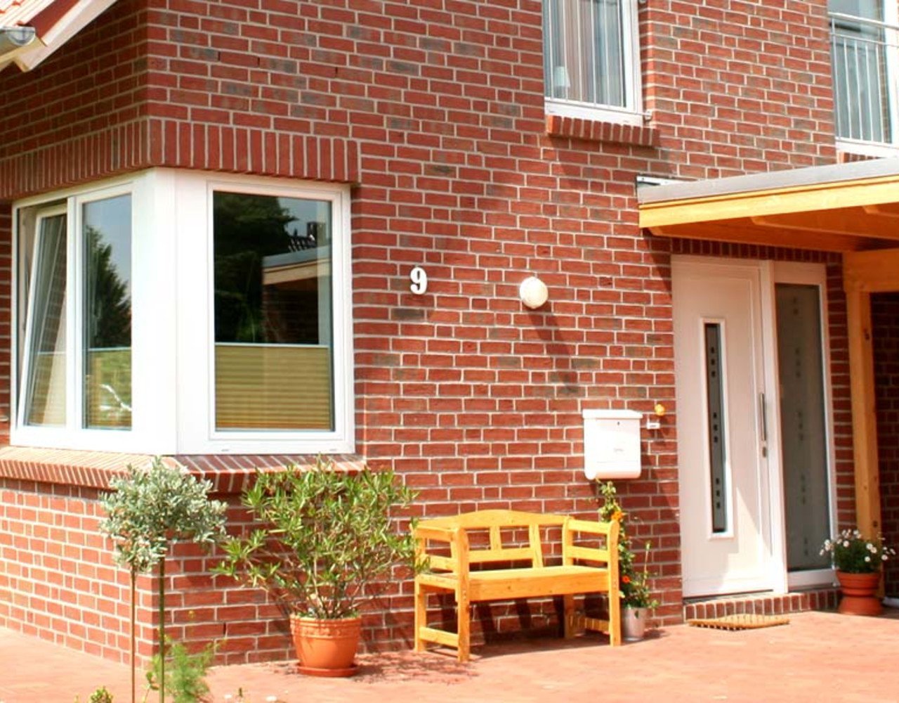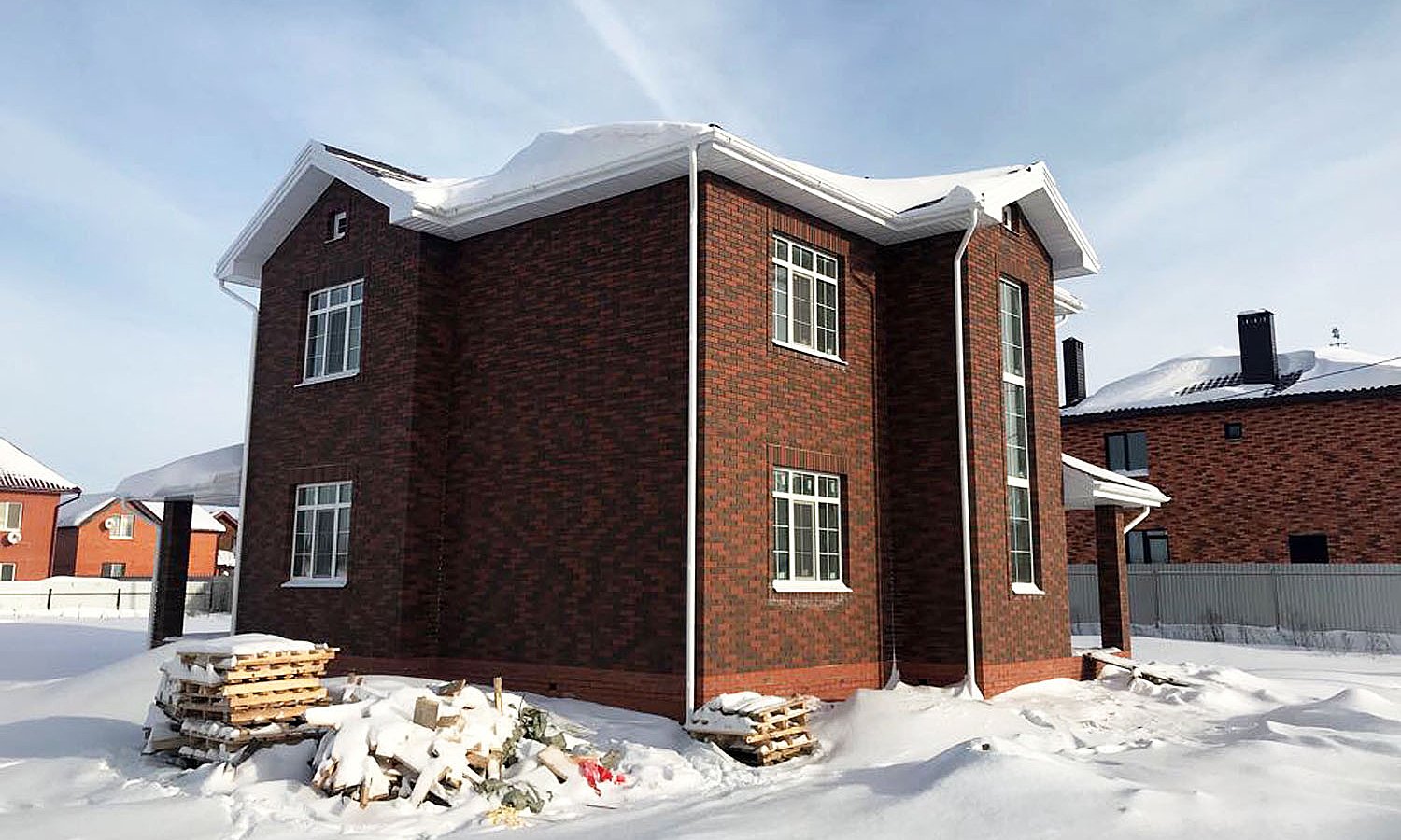 Красно коричневый кирпичный дом