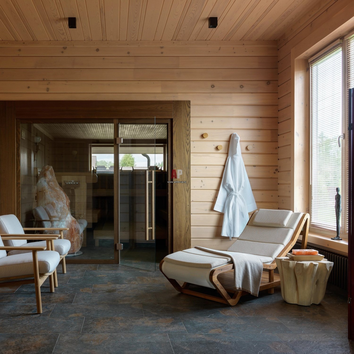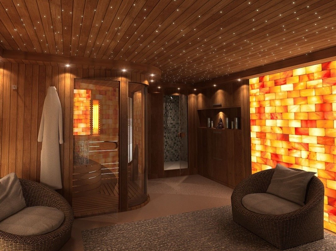 Гималайская соль в интерьере парилки