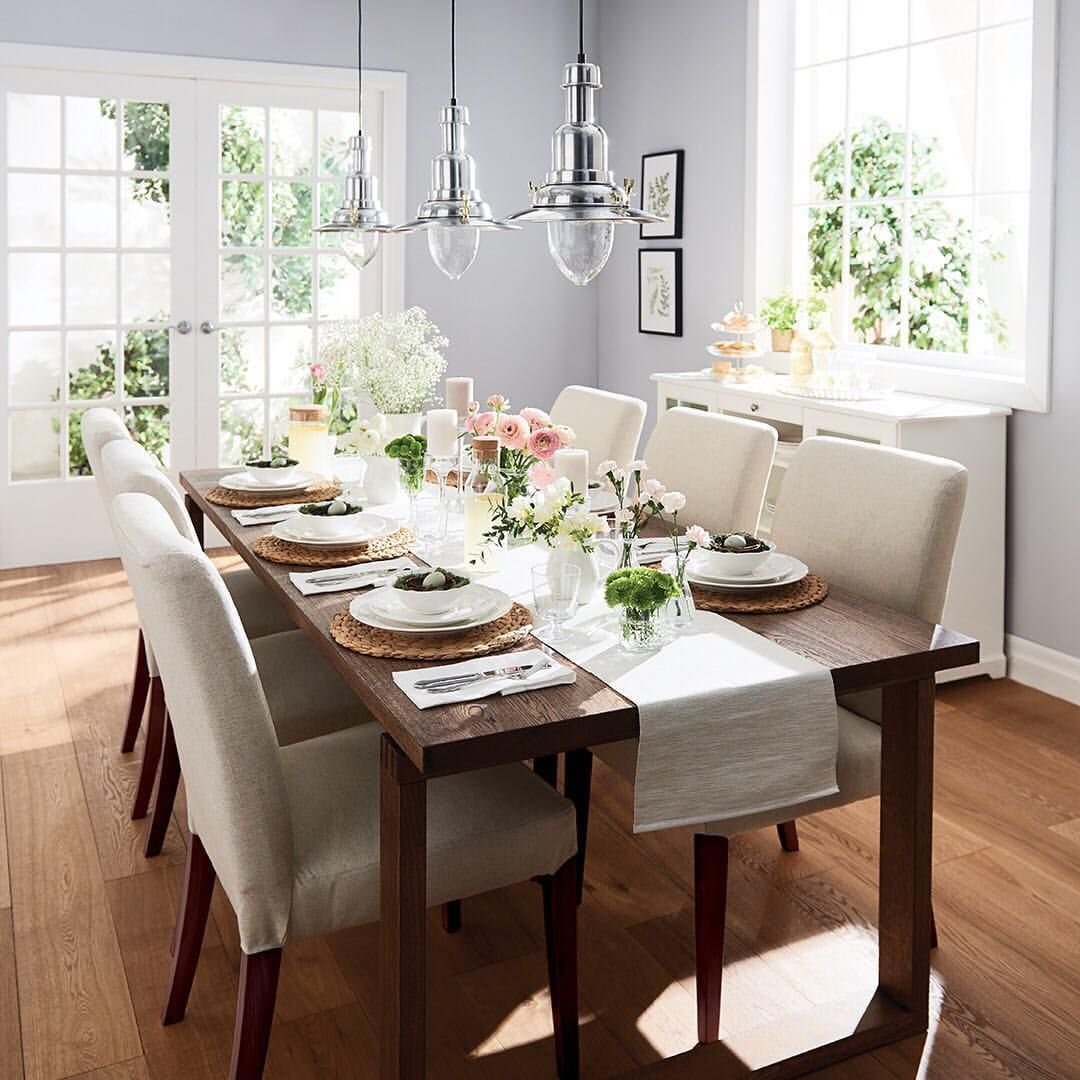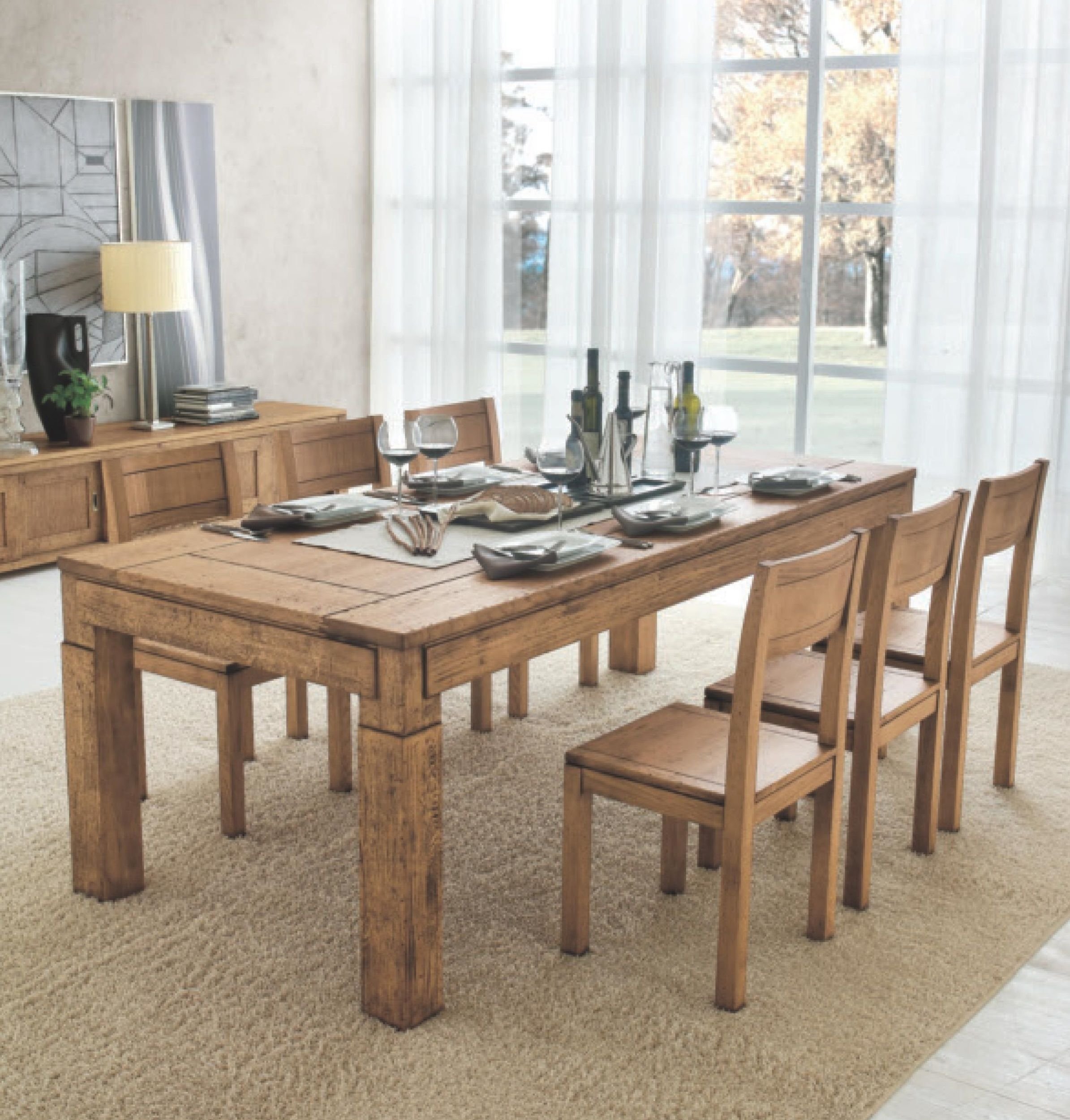 Длинный деревянный обеденный стол