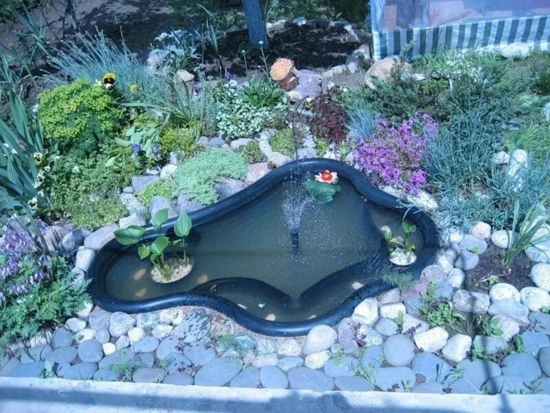 Пруд из ванны с альпийской горкой