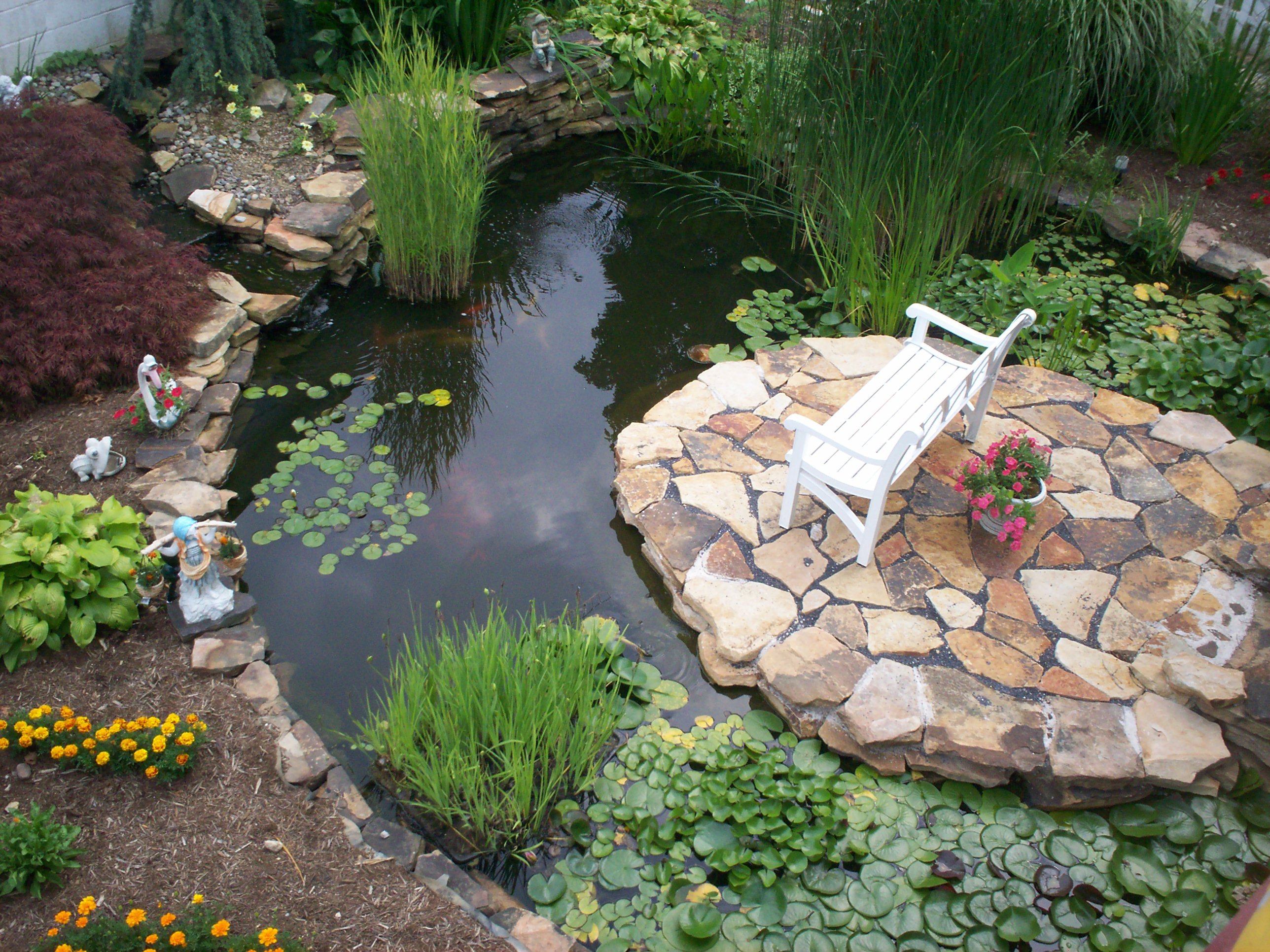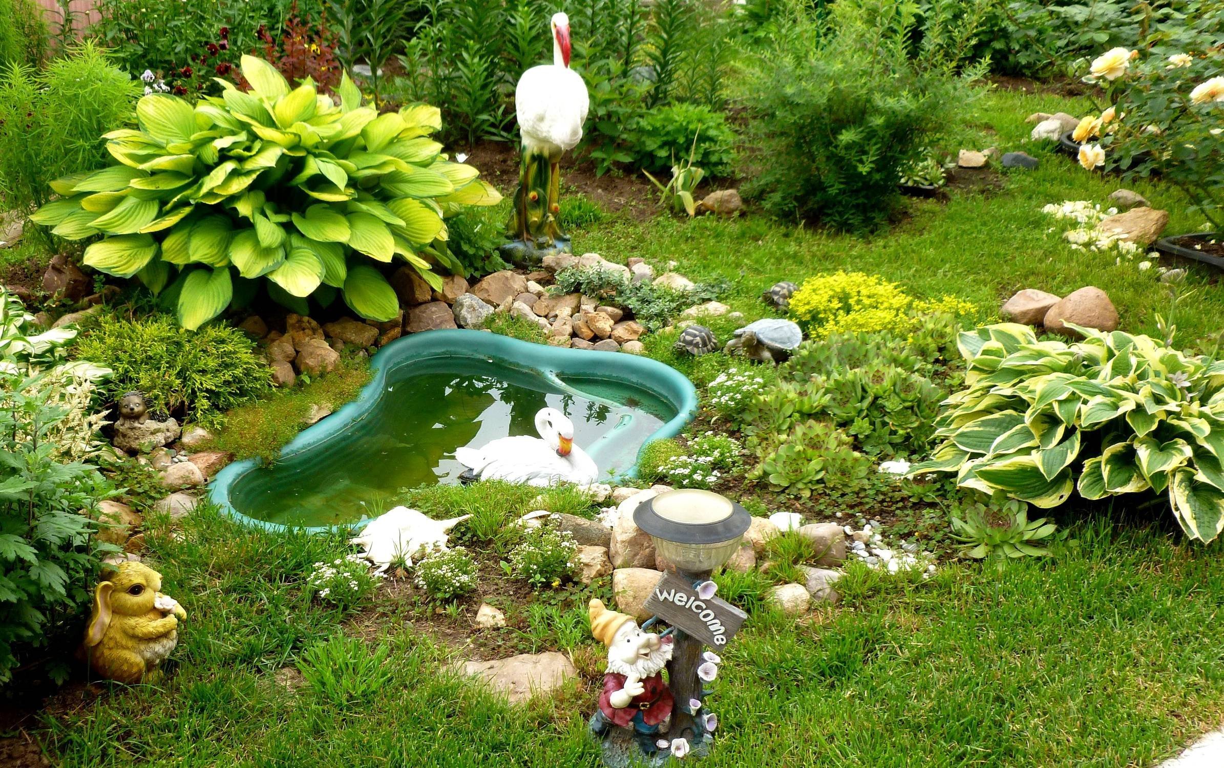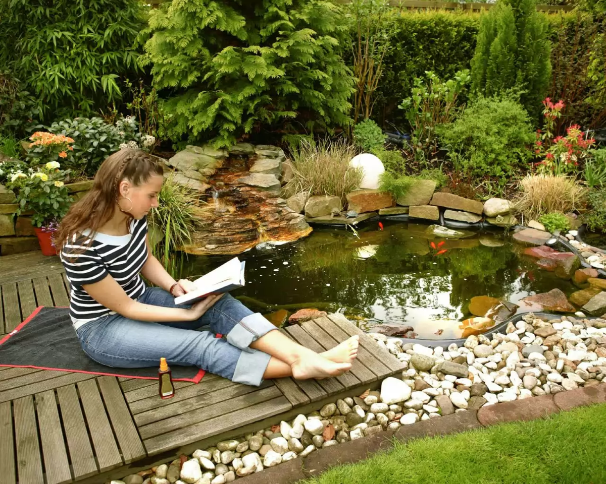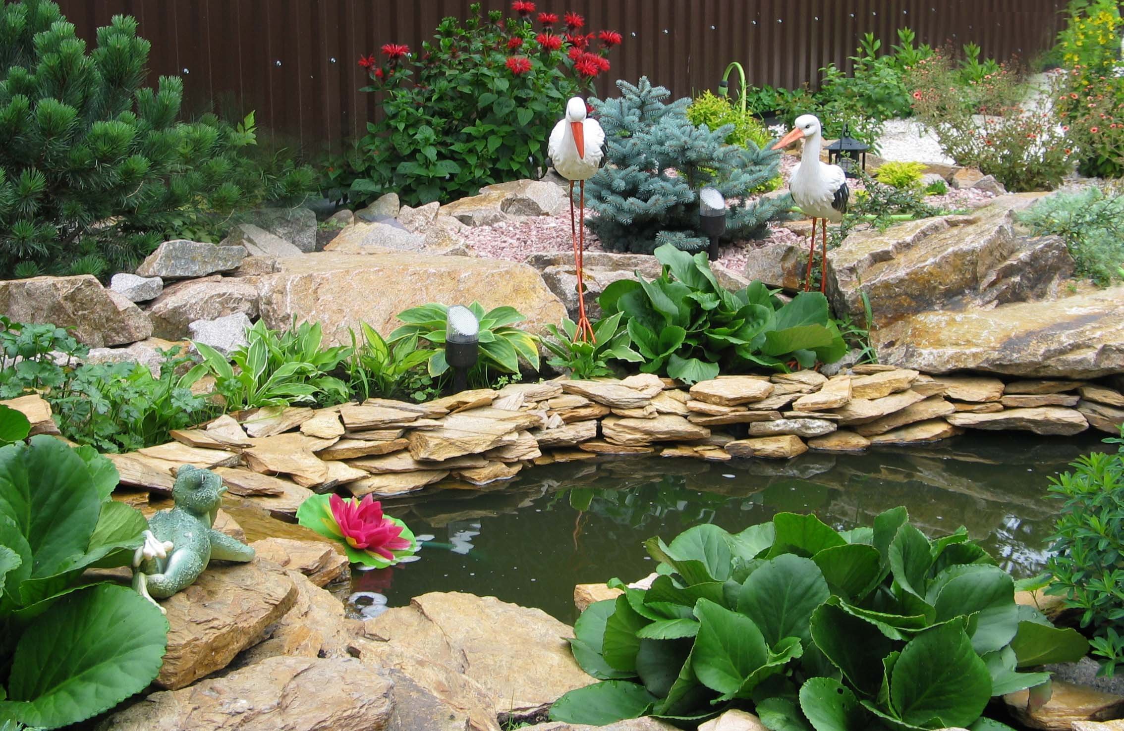 Украшение пруда на даче