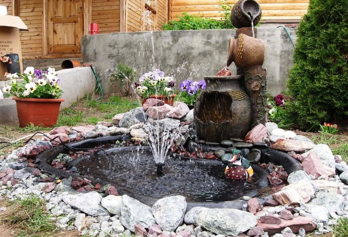 Украсить фонтанчик на даче своими