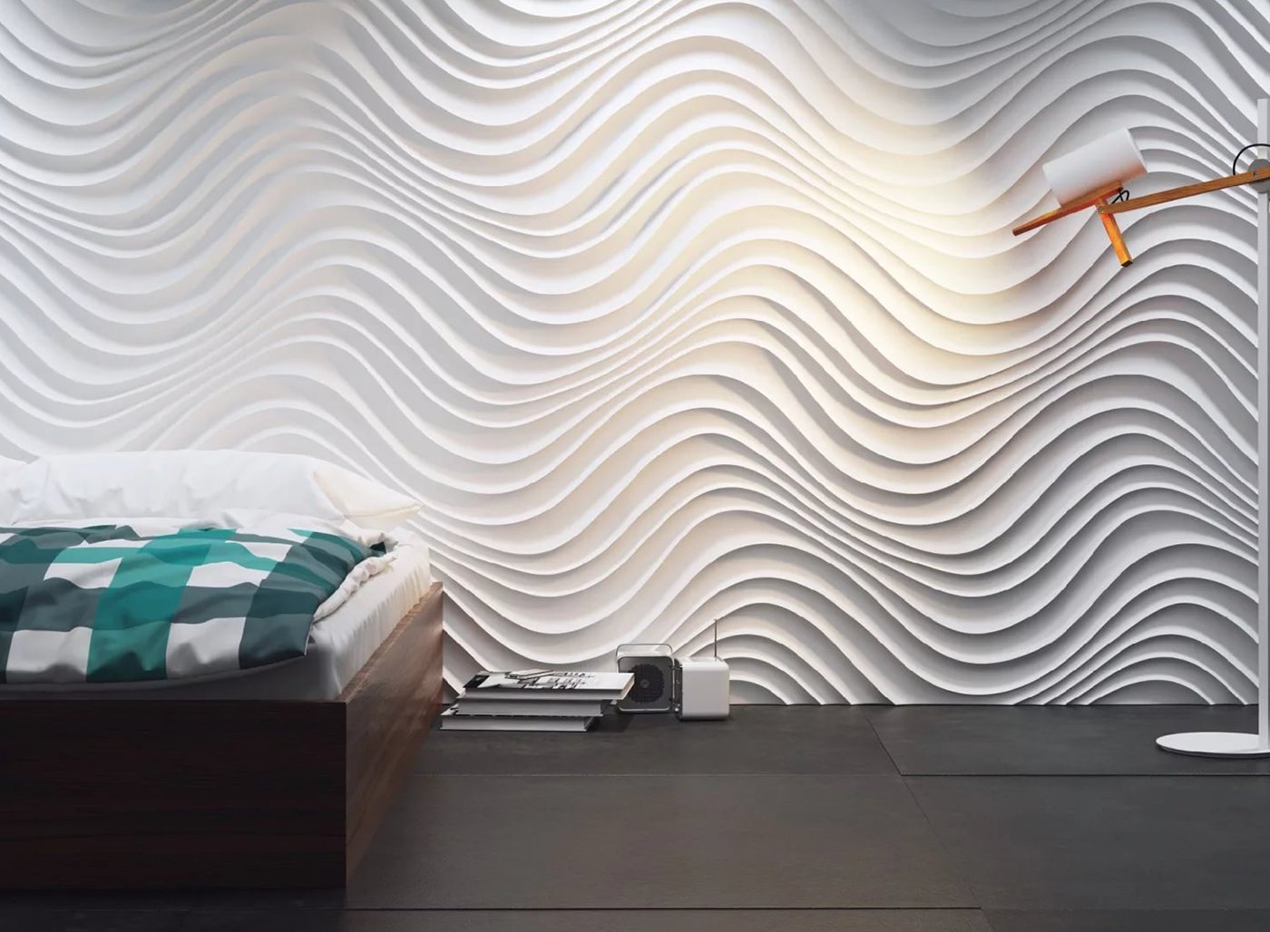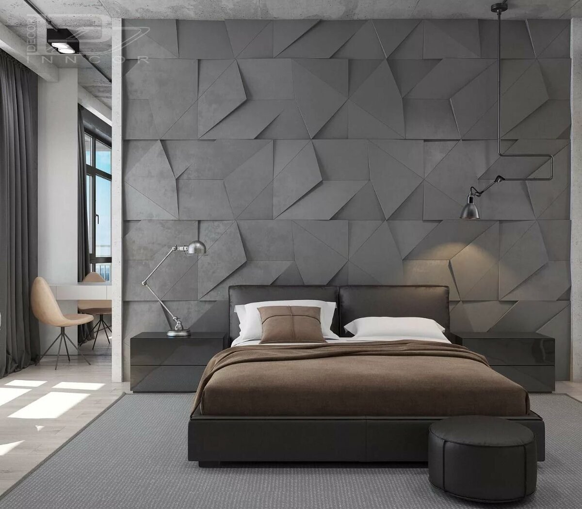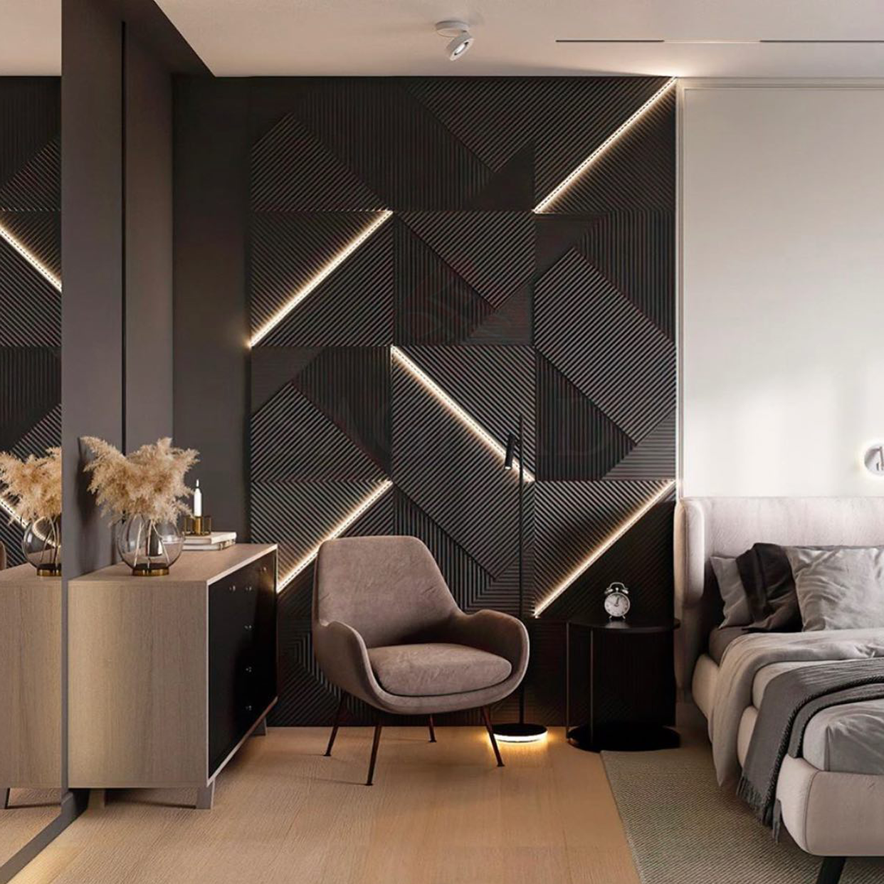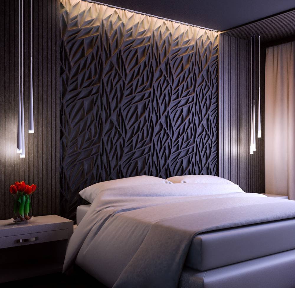 Гипсовые панели в спальне