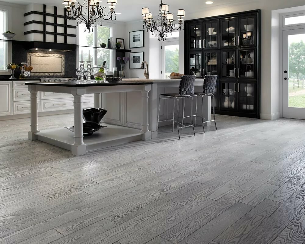 Серый ламинат на кухне