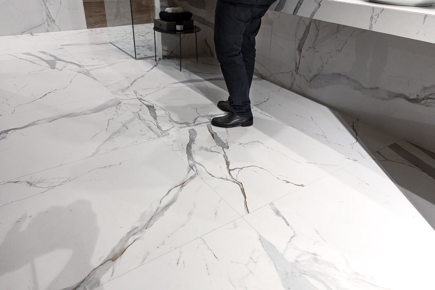 Кухня с мраморной плиткой на полу
