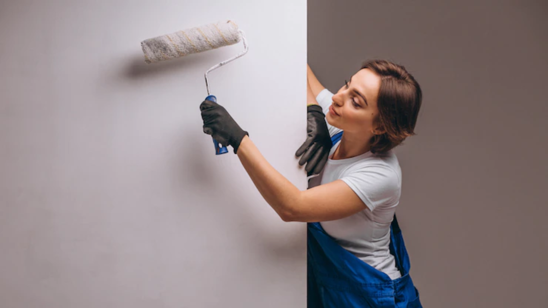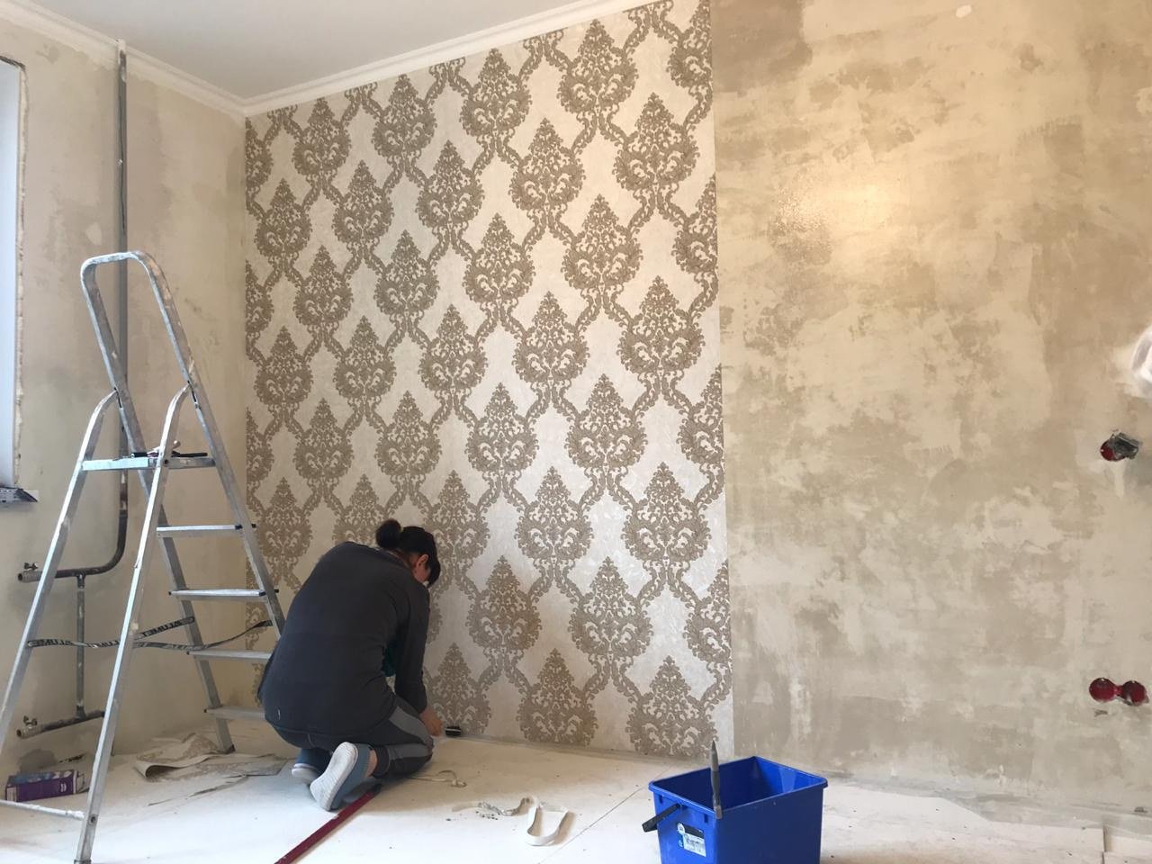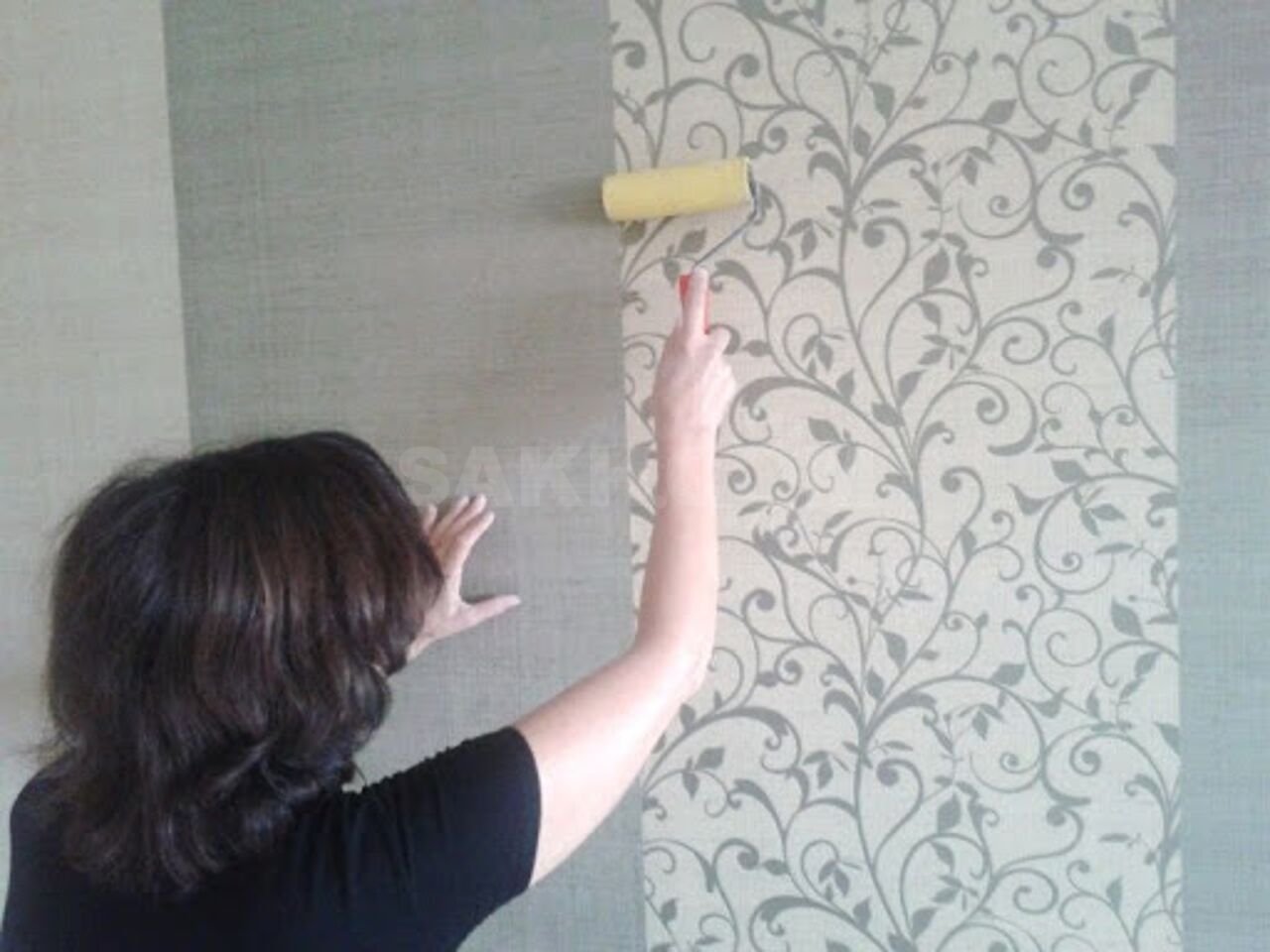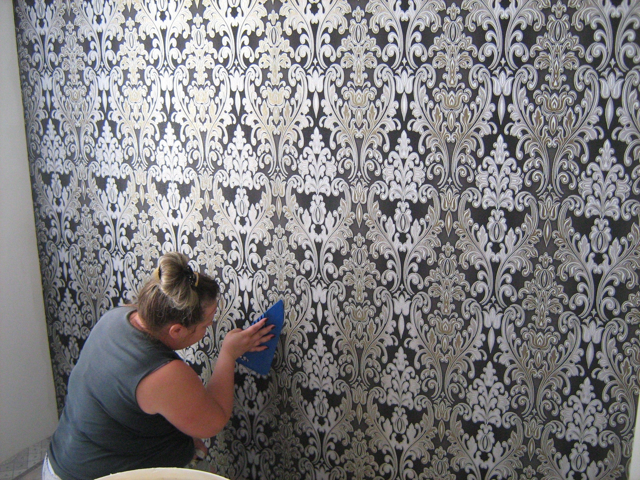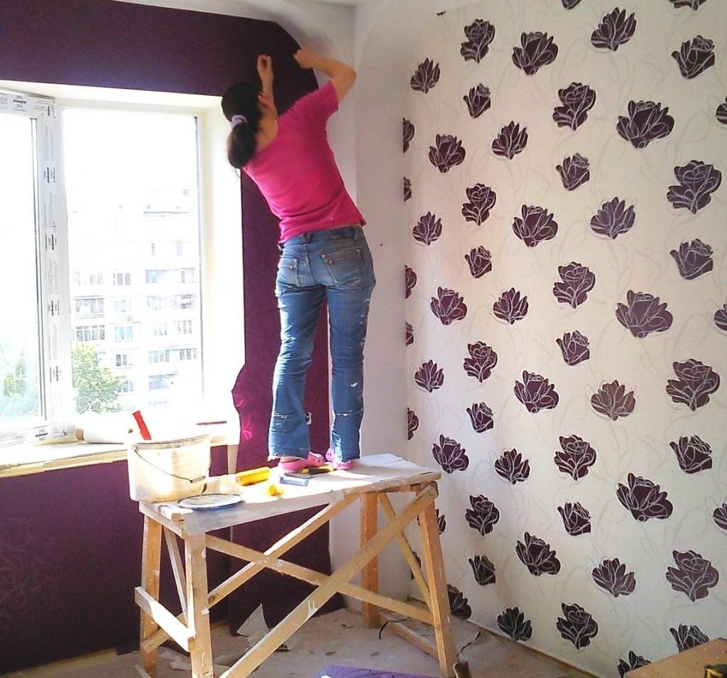 Поклейка обоев женщина