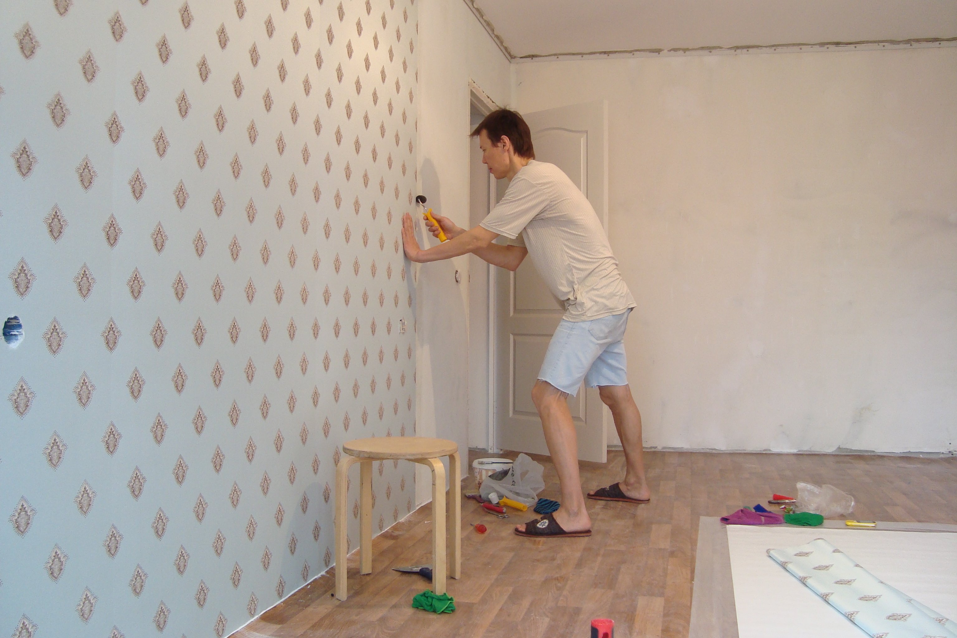 Поклейка обоев до и после
