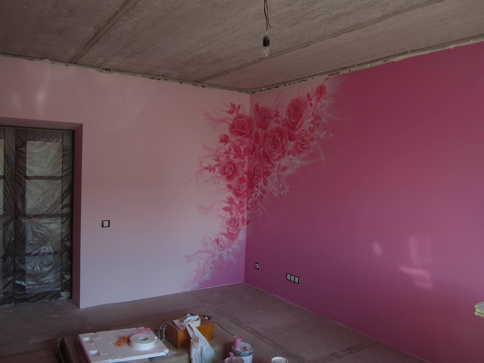 Покраска стен до и после