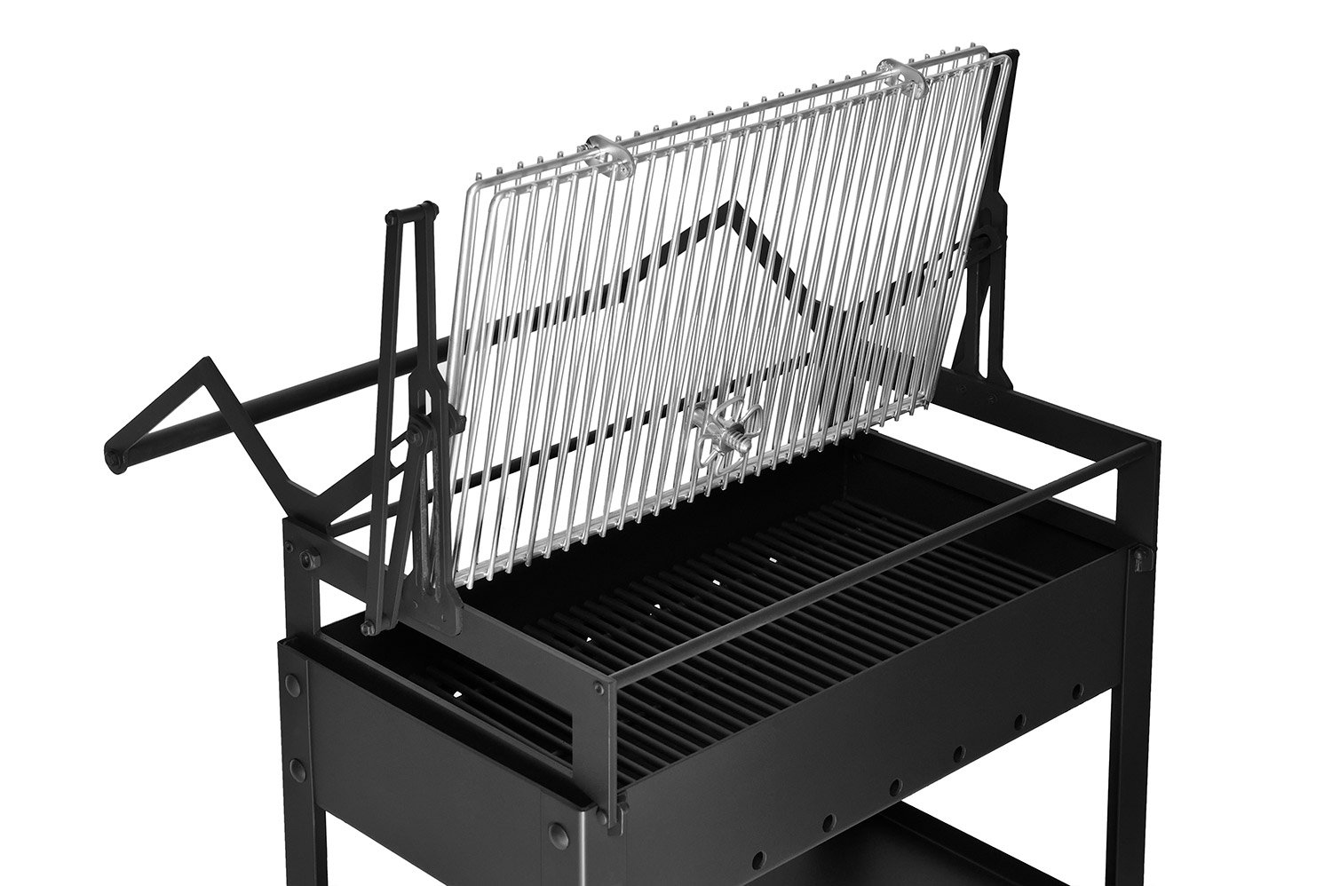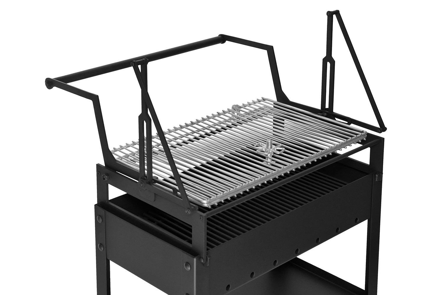 Мангал с переворачивающейся решеткой с регулировкой высоты