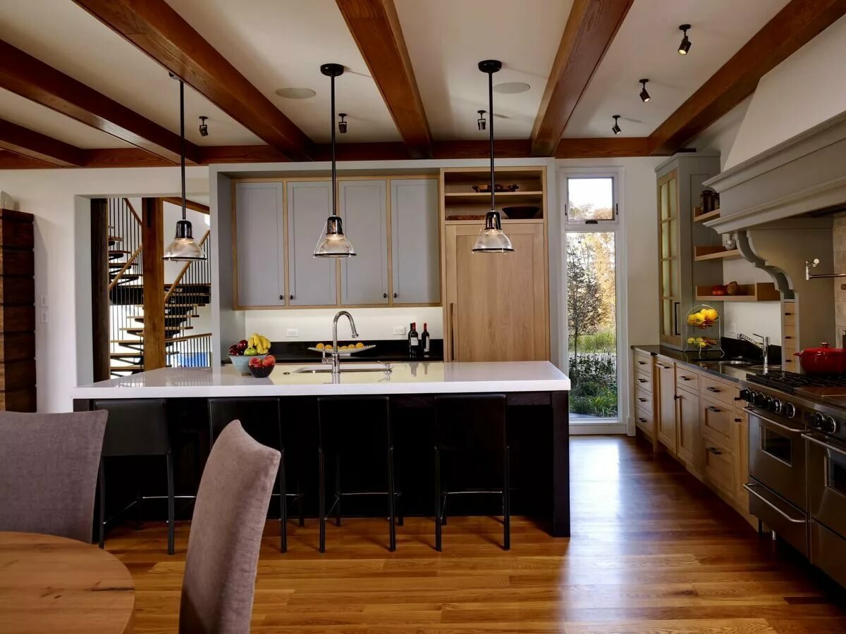 Кухня в современном стиле с балками