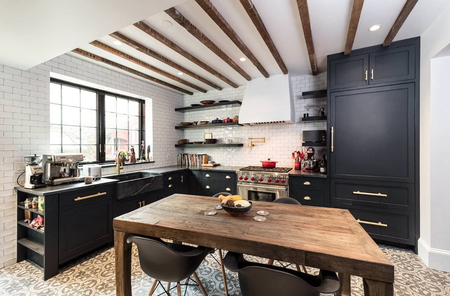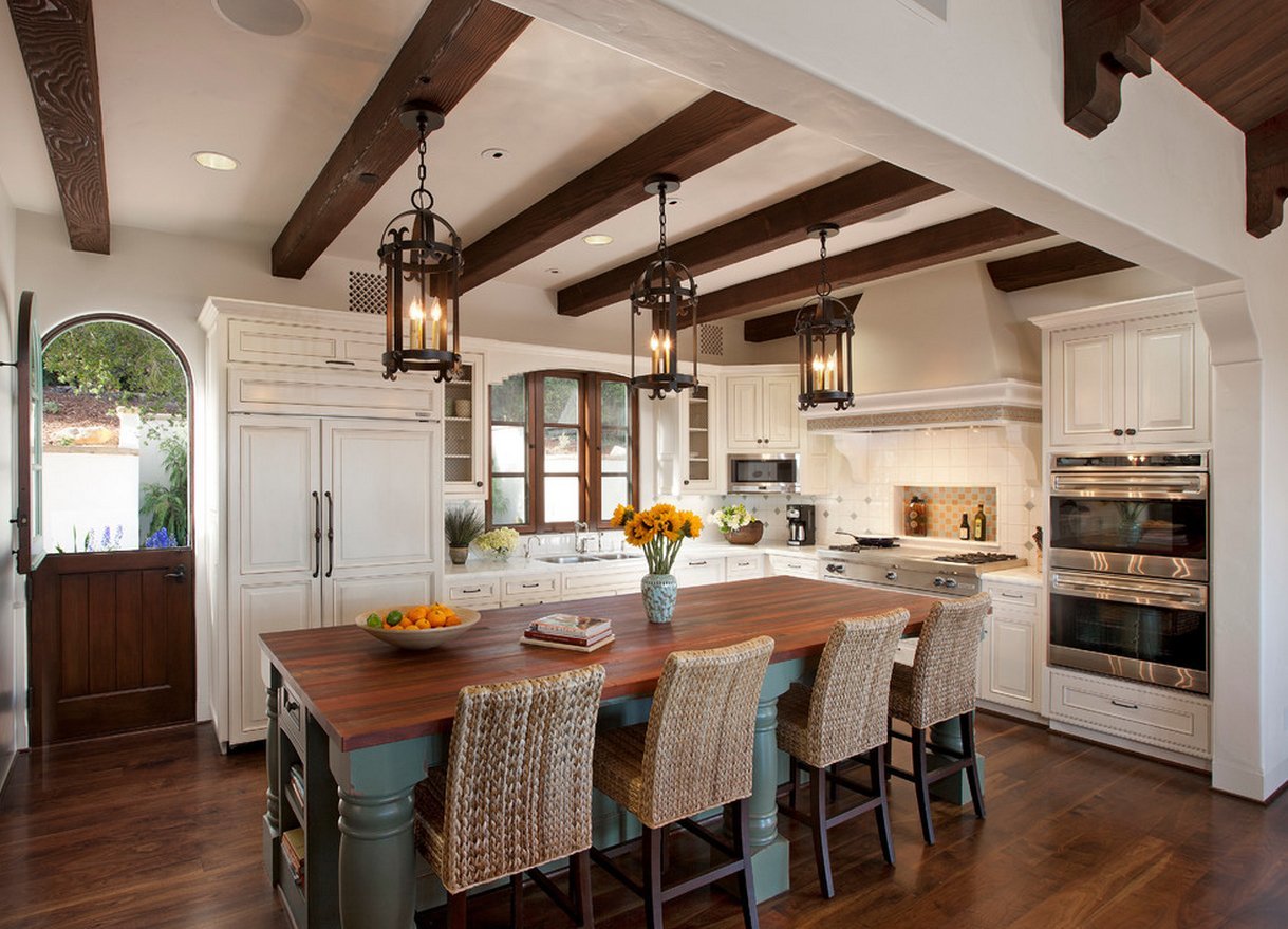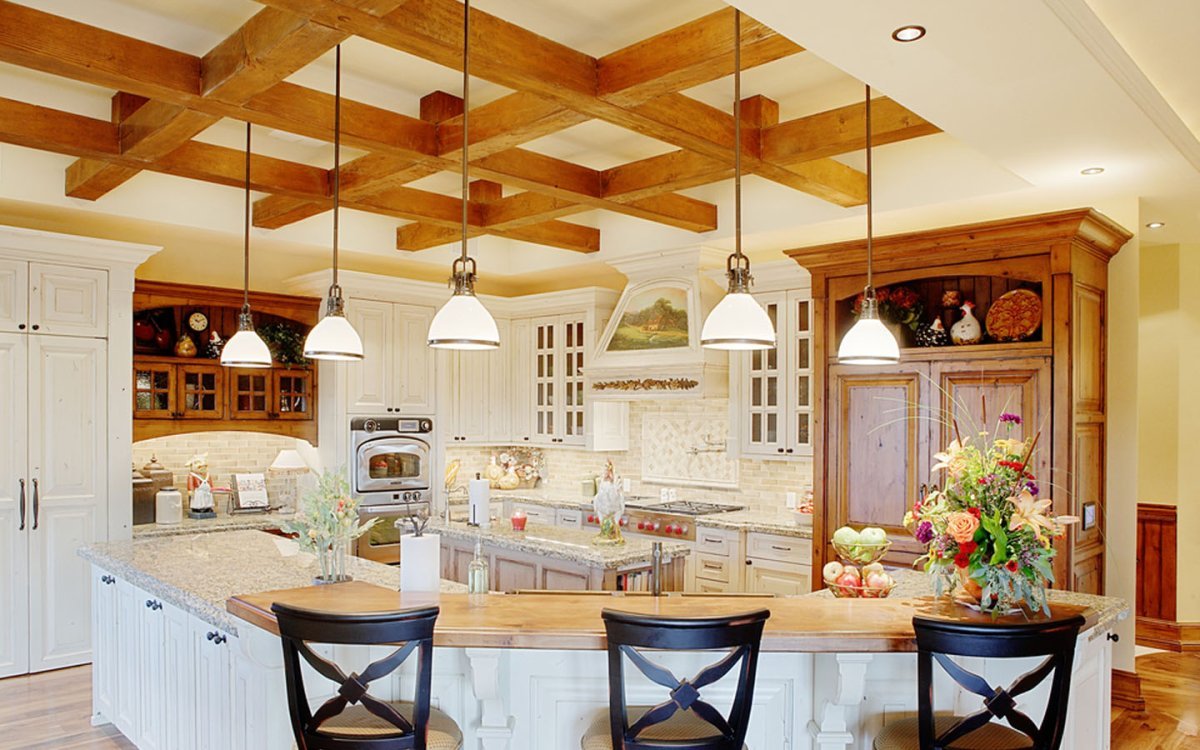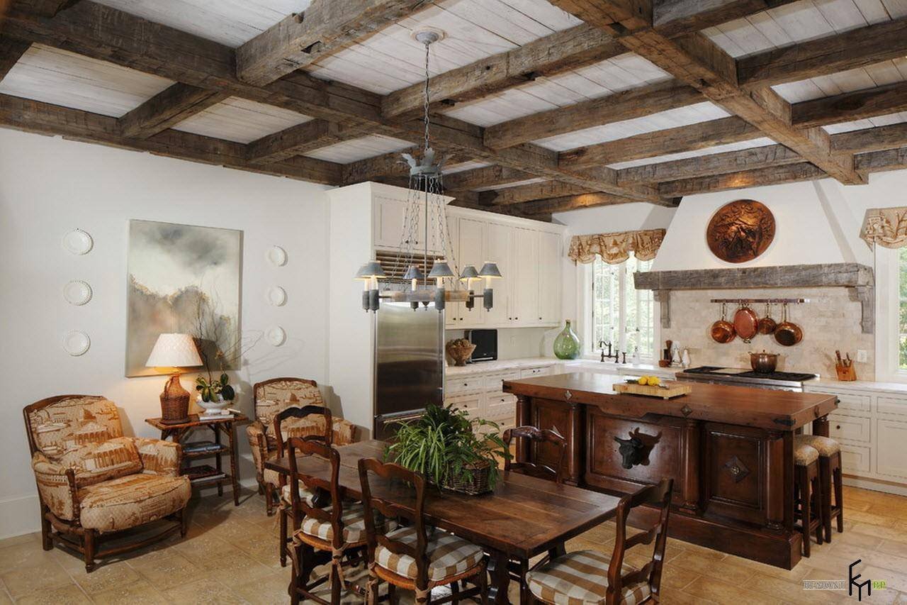 Потолочные балки в интерьере кухни