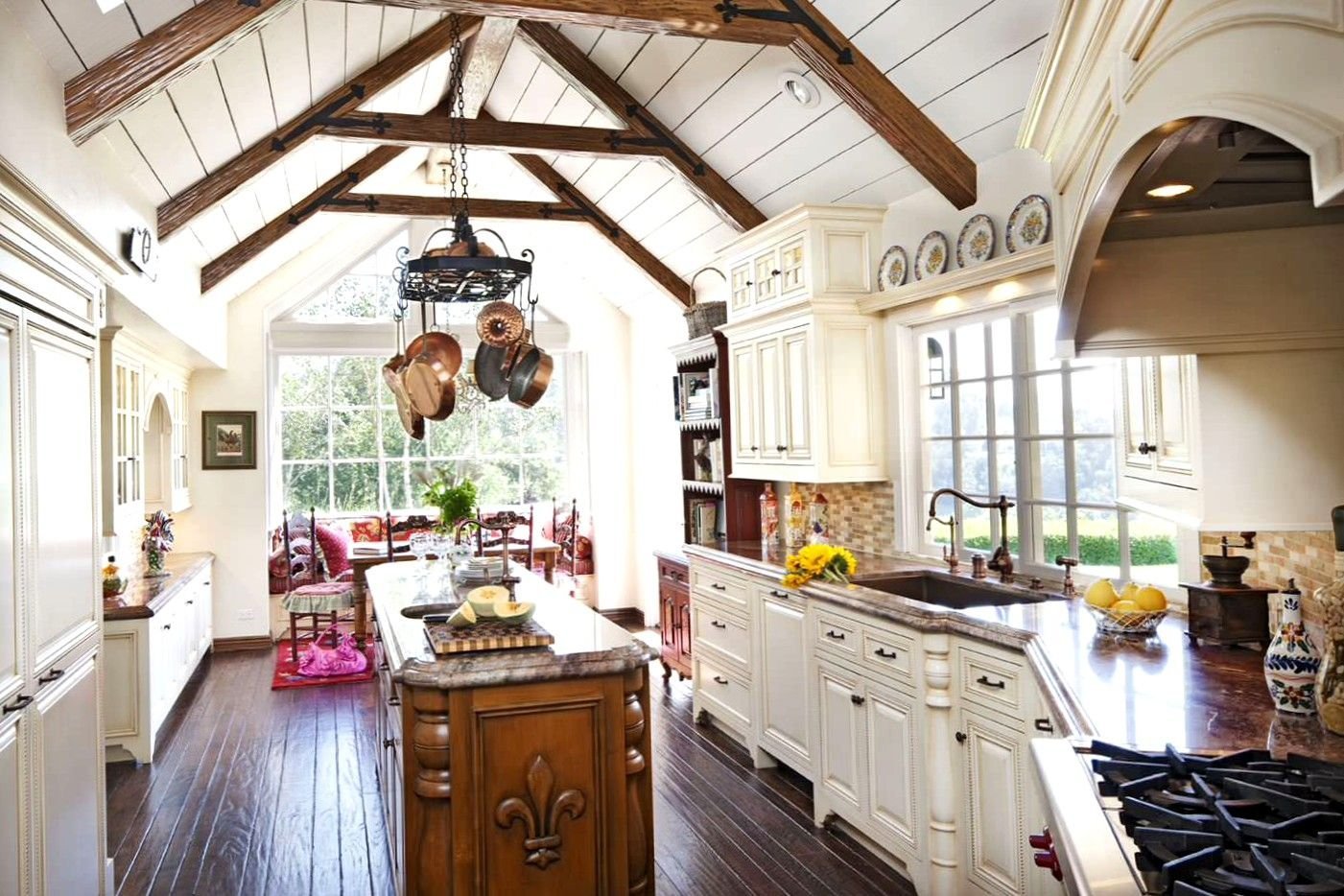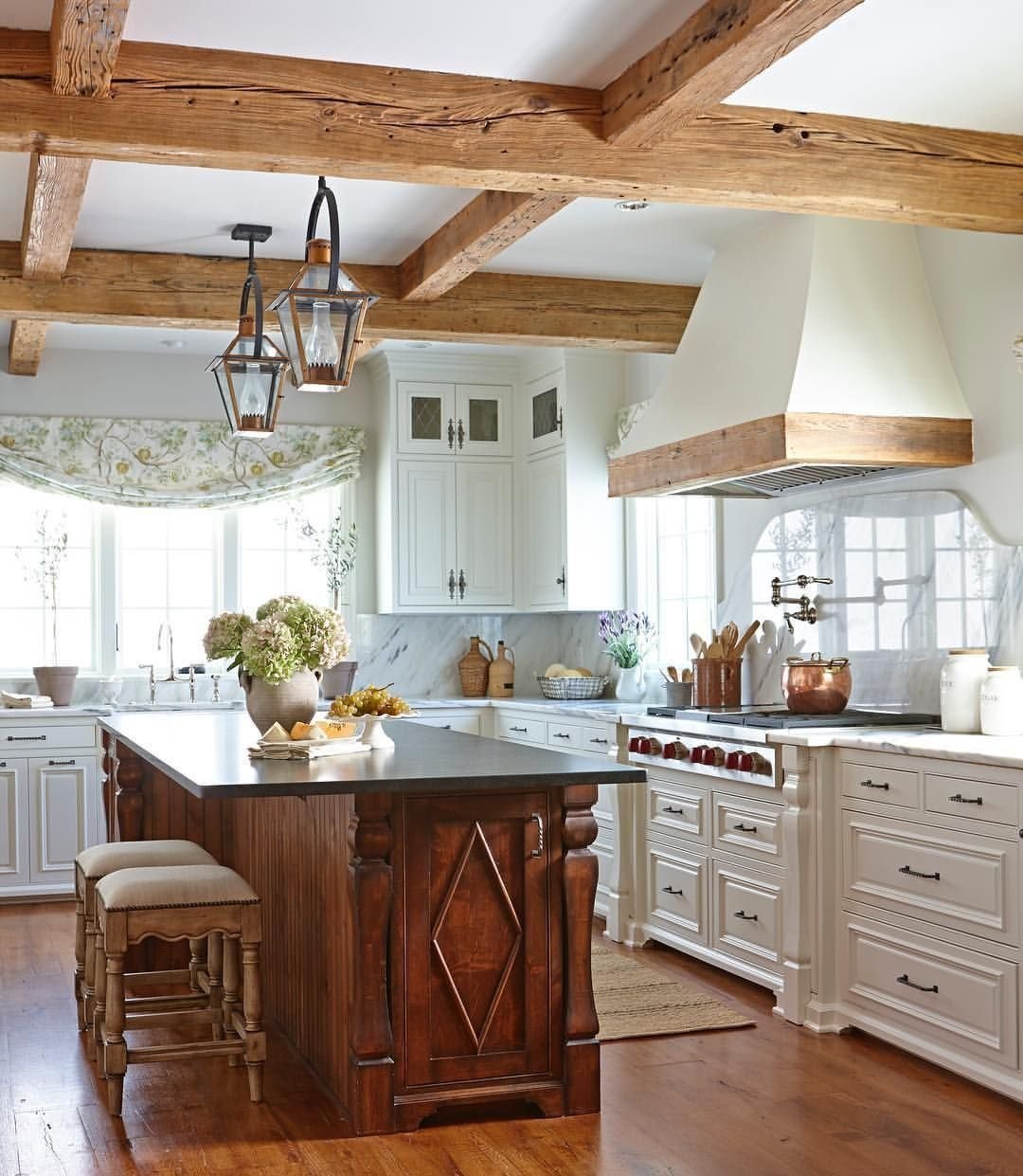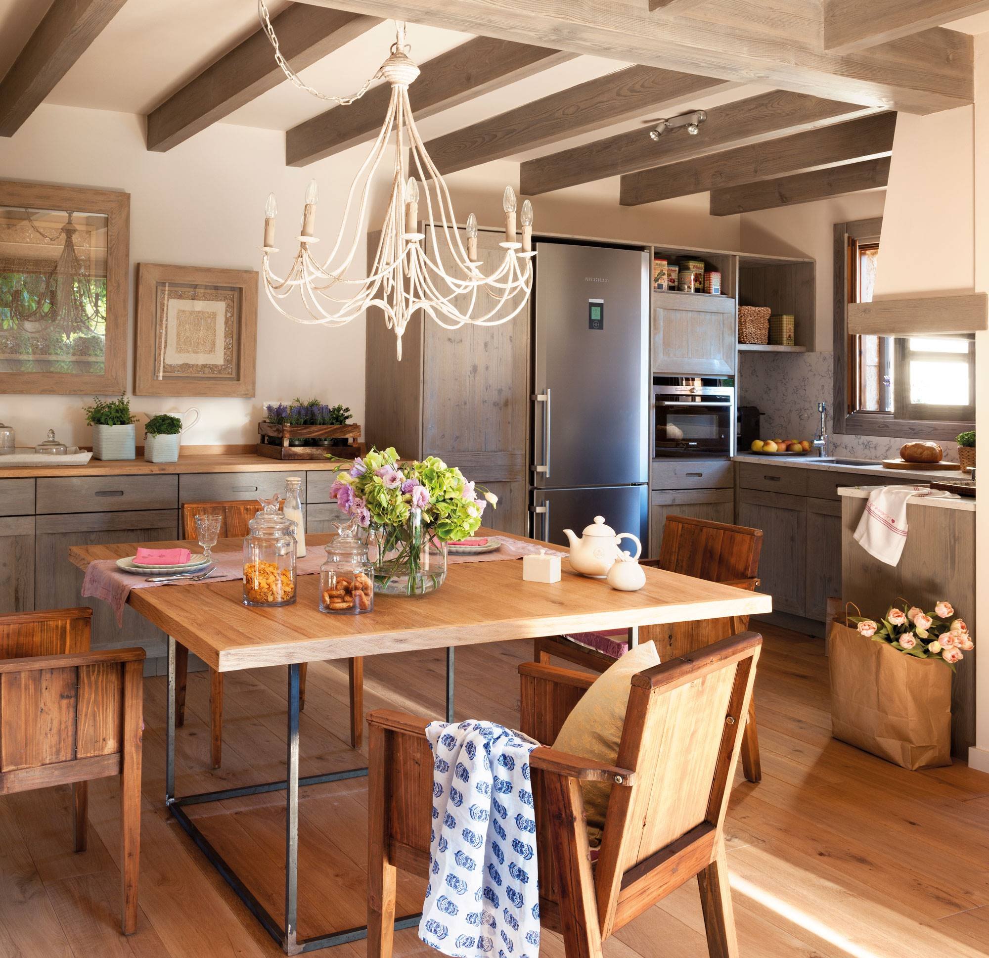Потолочные балки в интерьере кухни