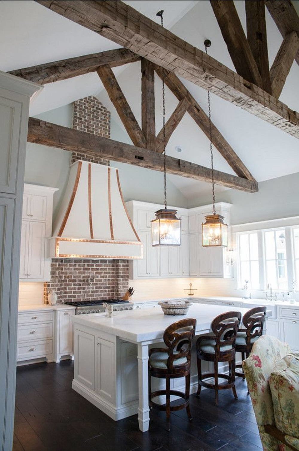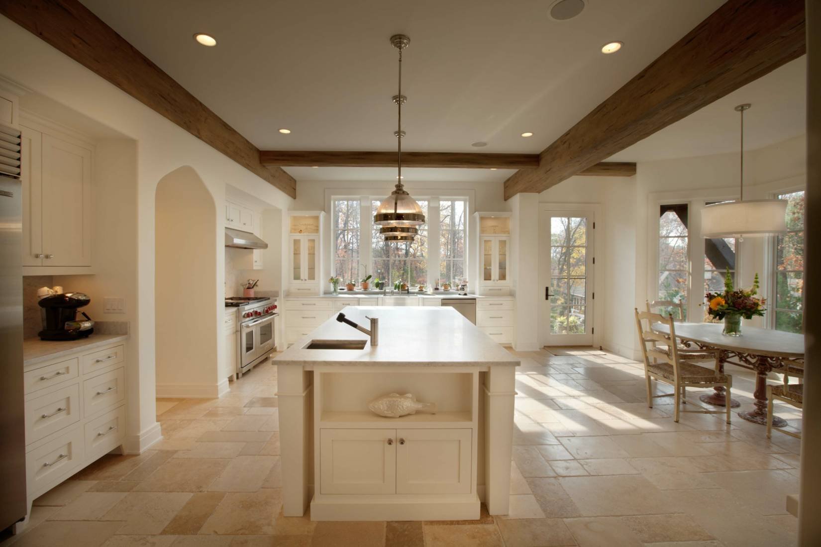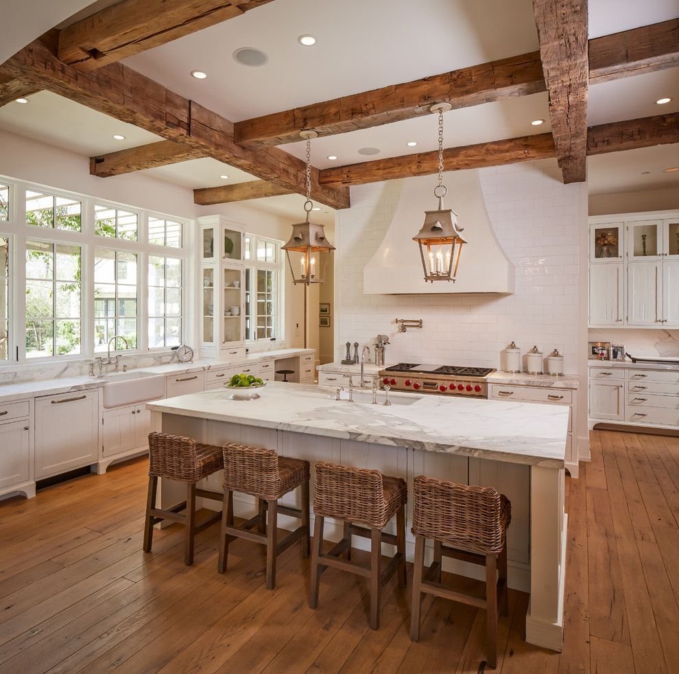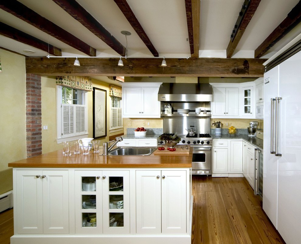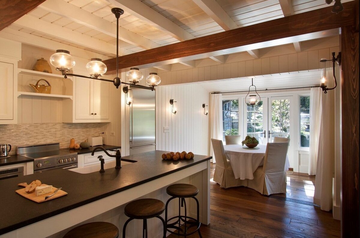 Кухня с белыми балками