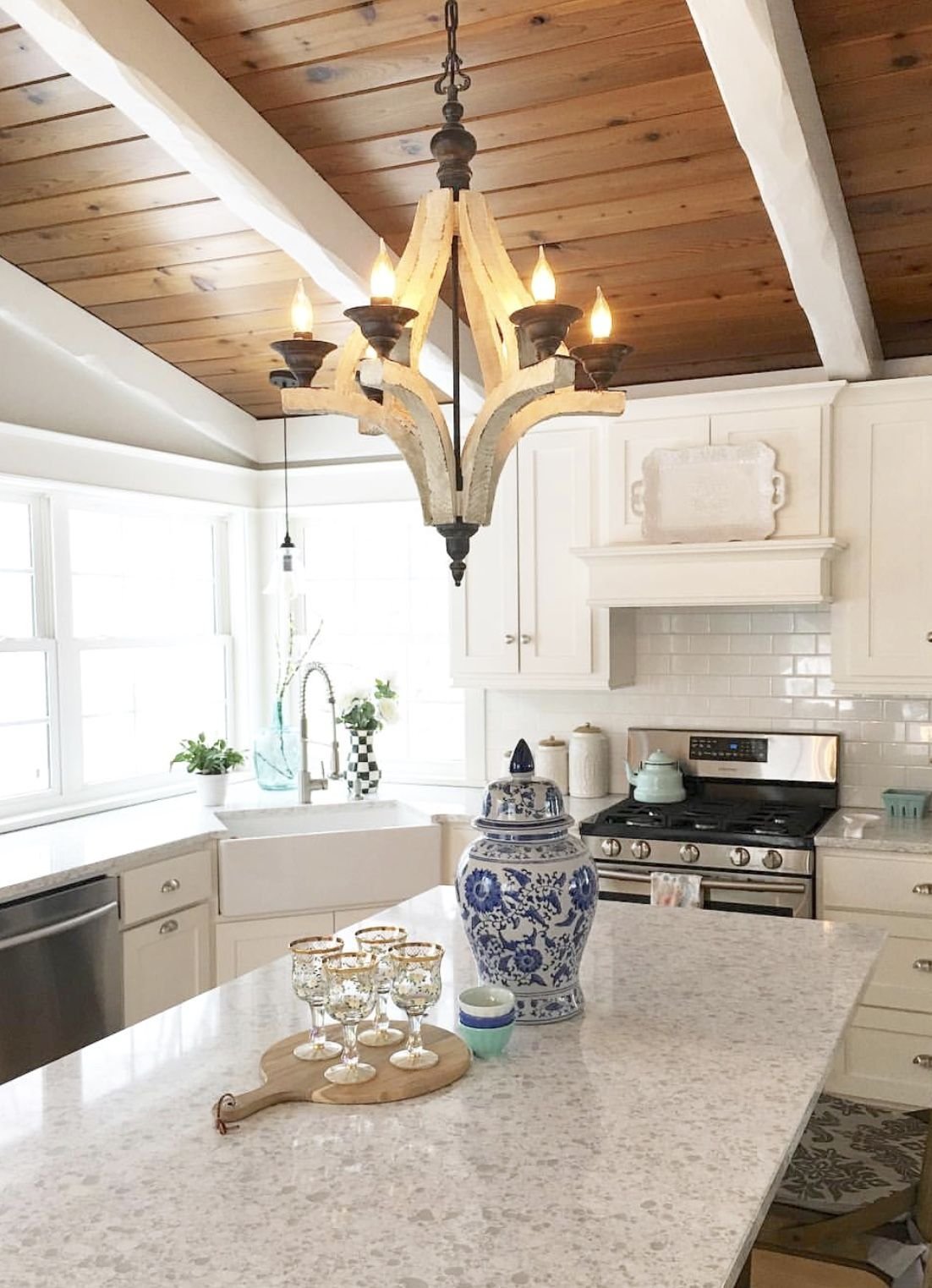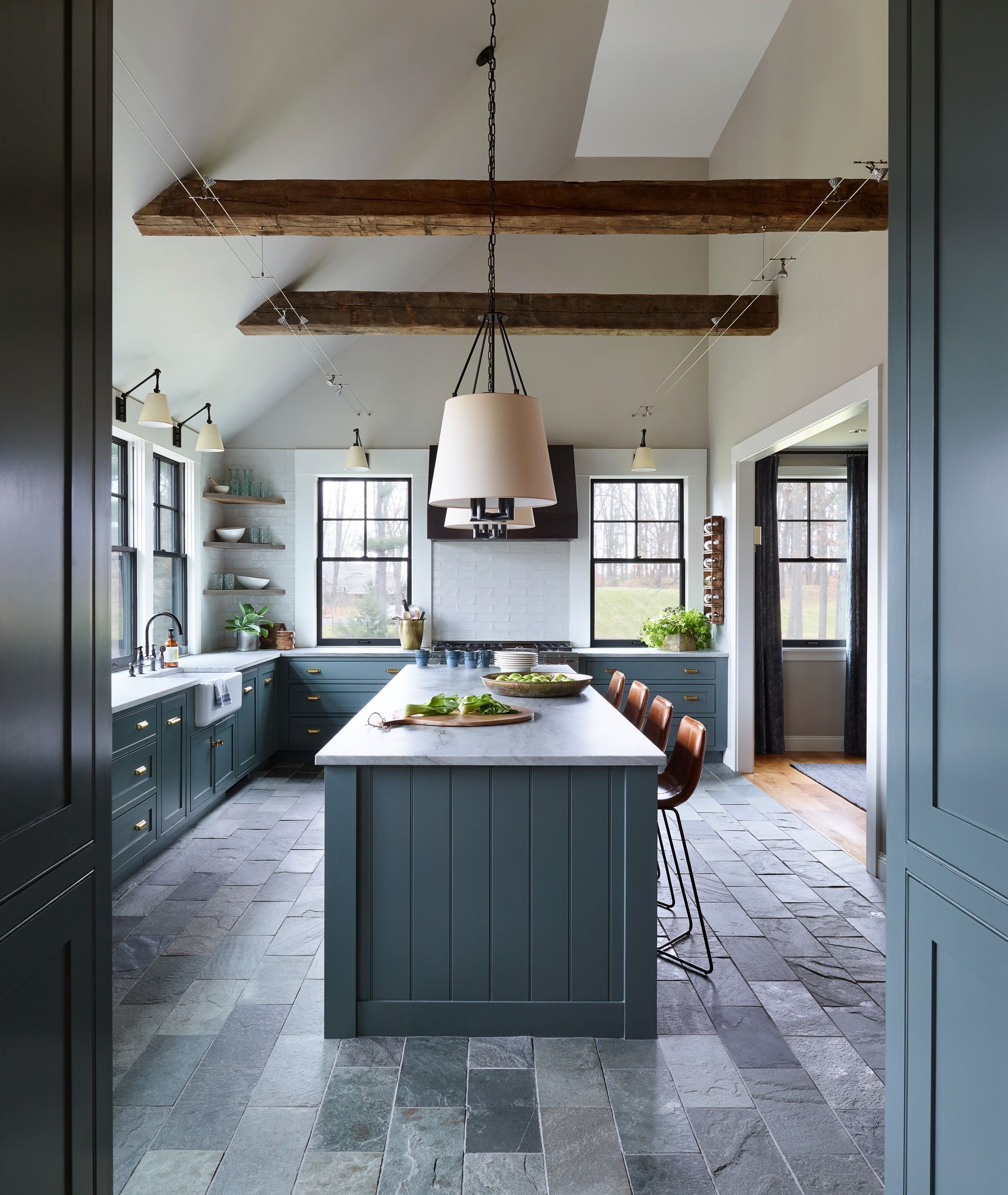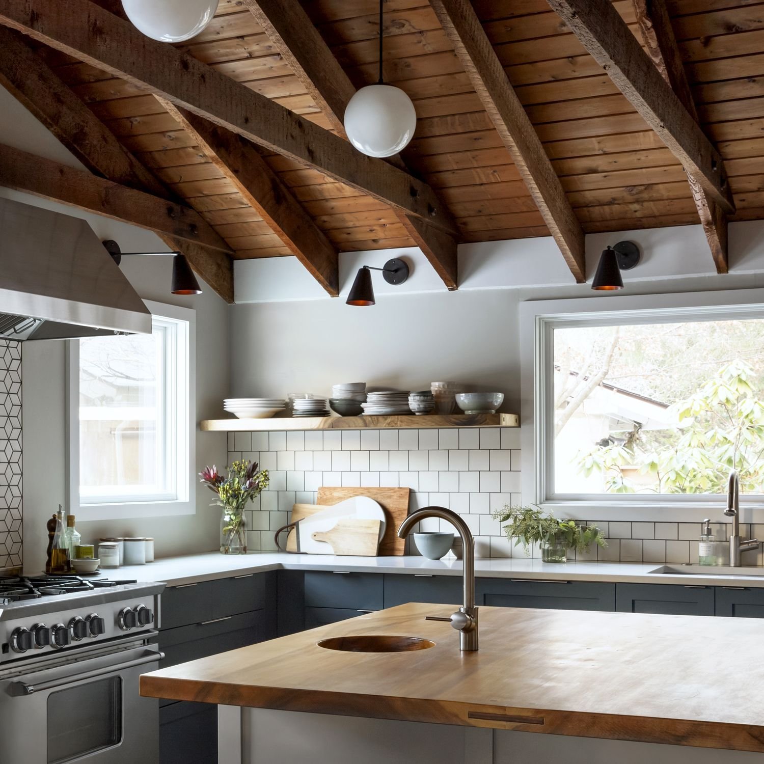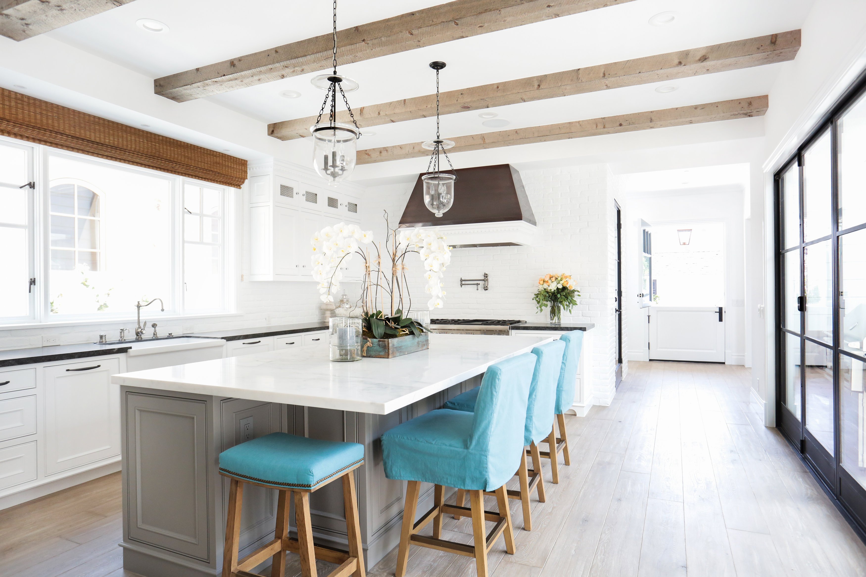 Кухня с белыми балками