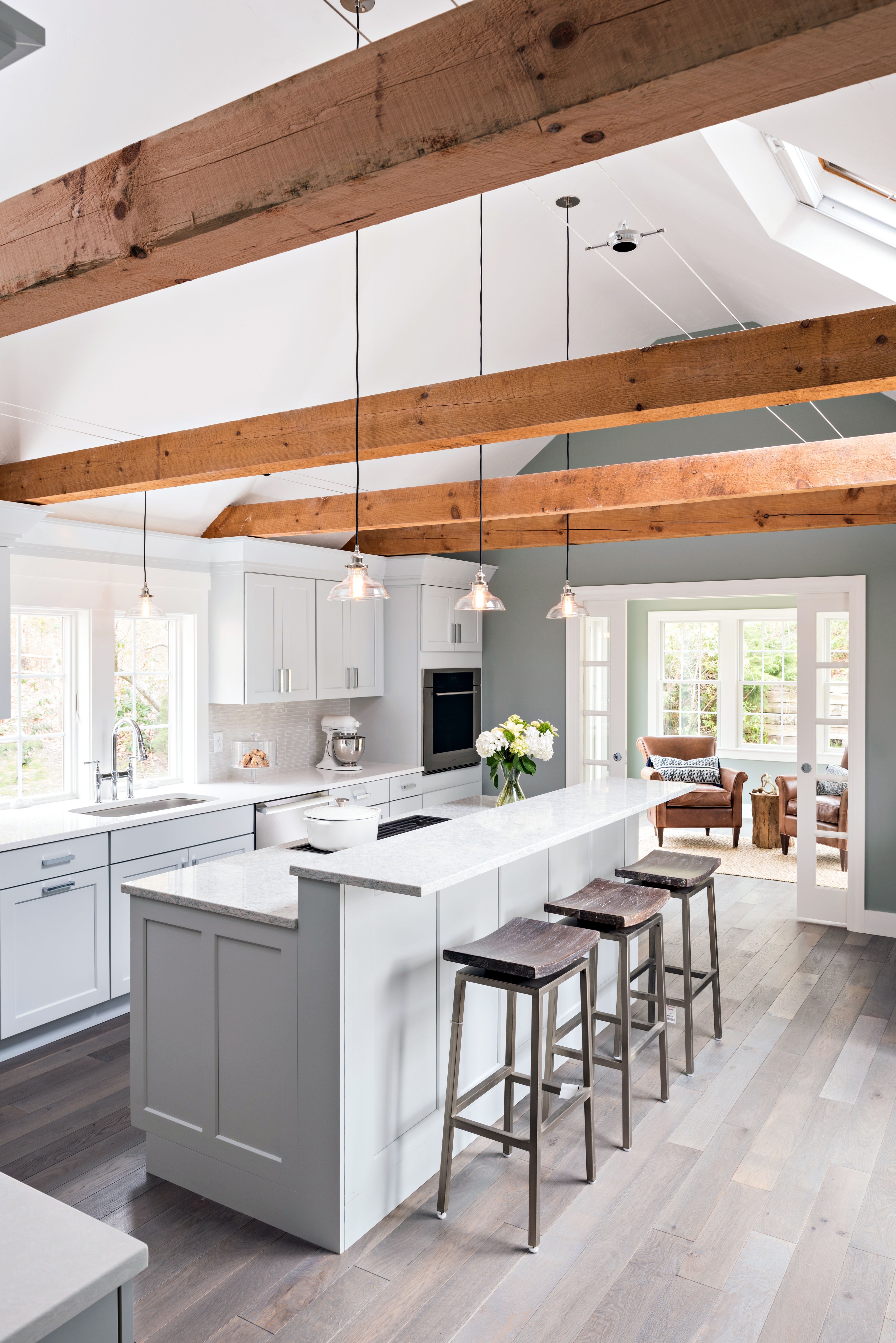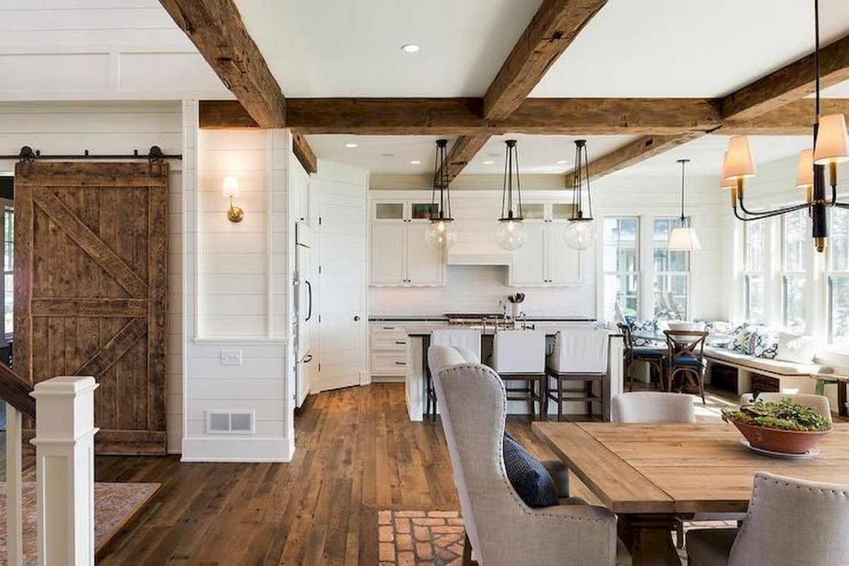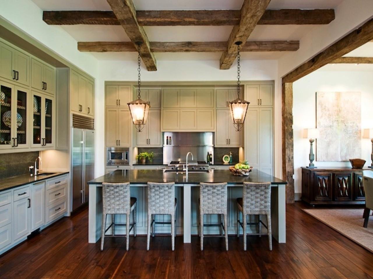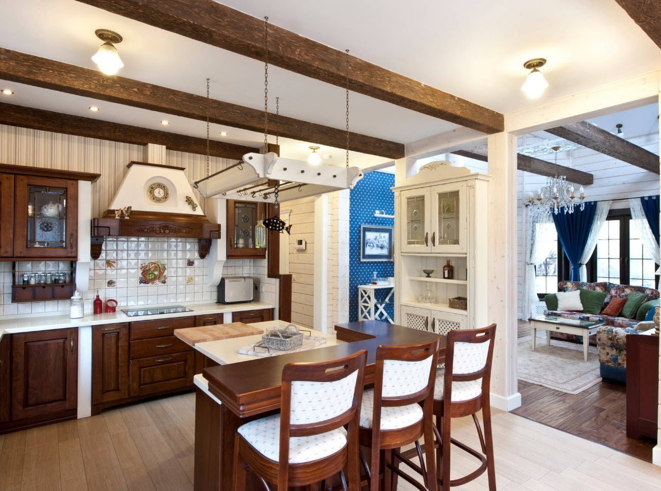 Деревянные балки на потолке кухня гостиная