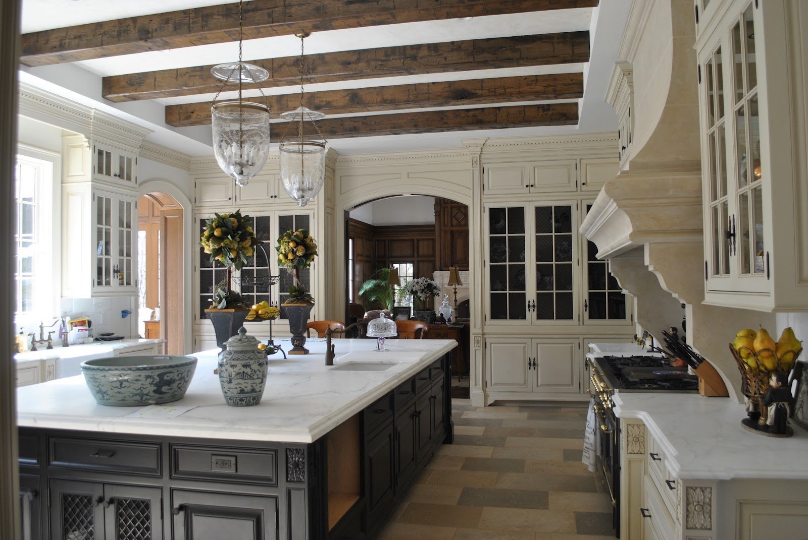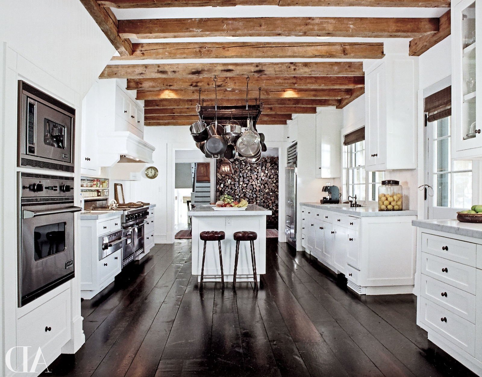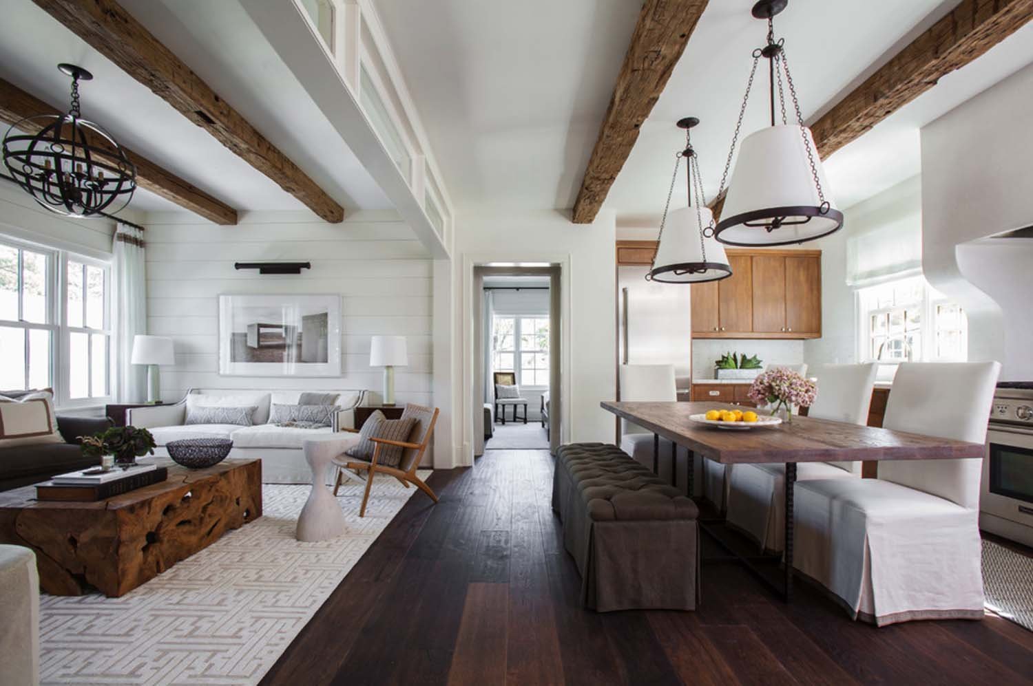 Деревянные балки на потолке кухня гостиная