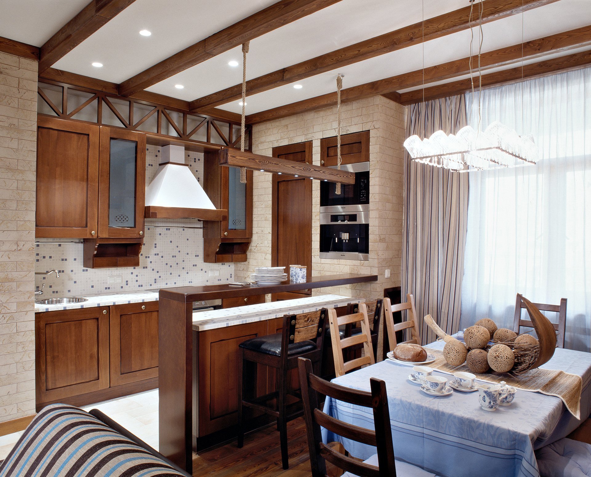 Кухня с балками на потолке