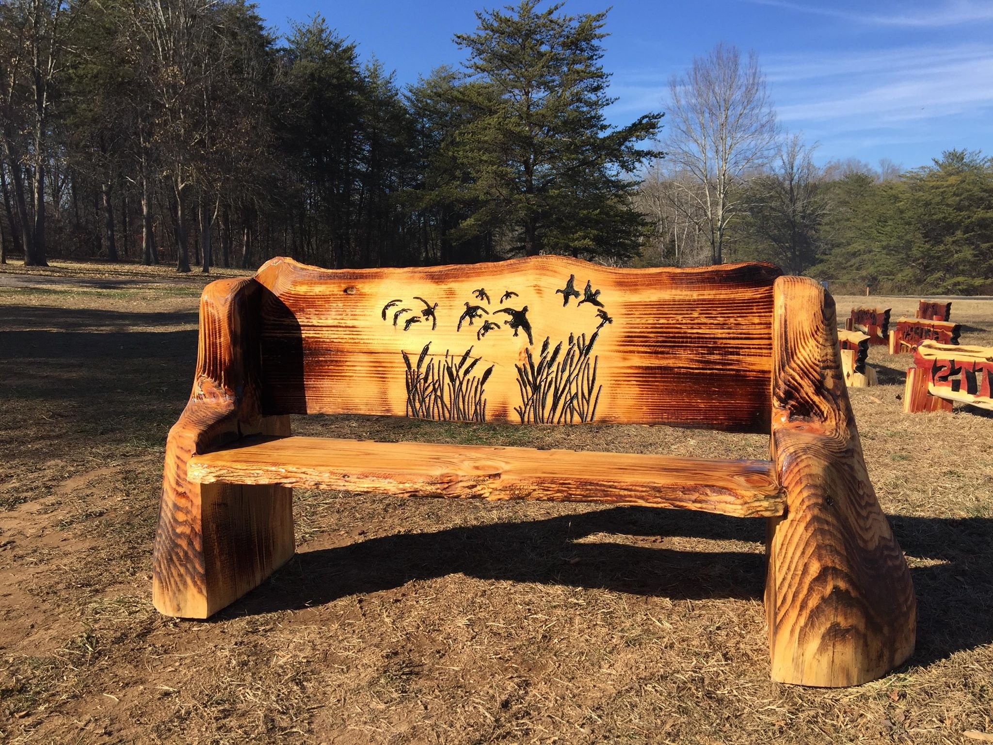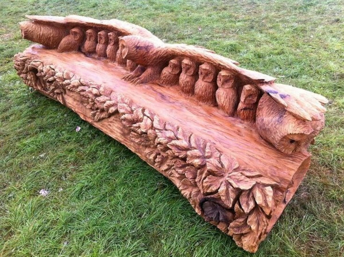 Деревянные скамейки бензопилой