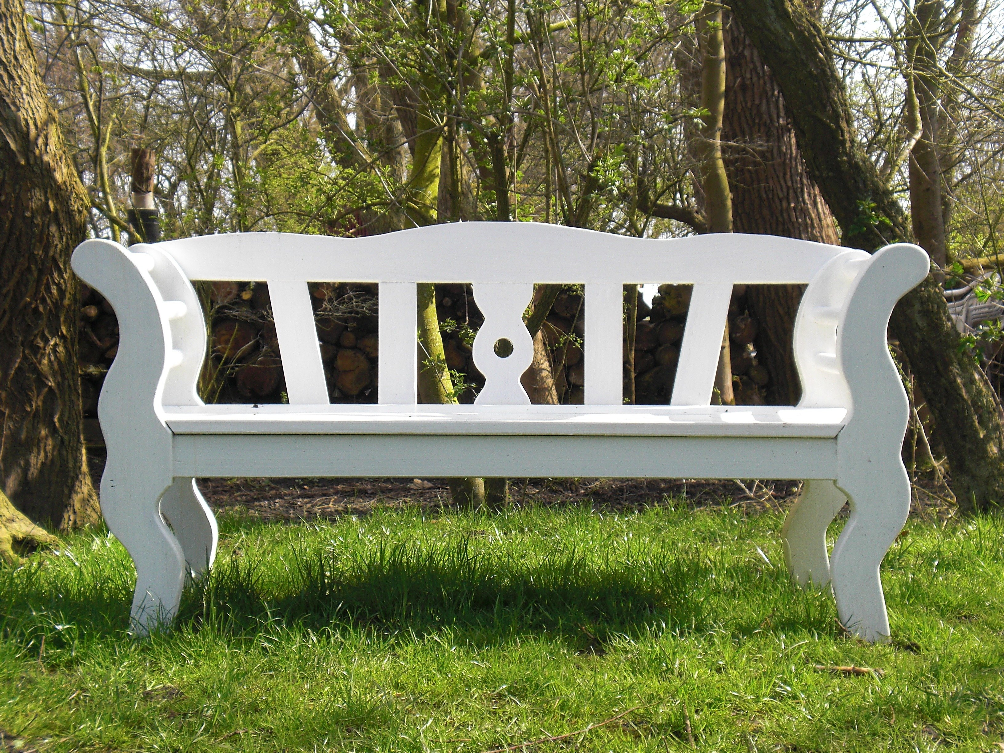 Деревянная скамейка, белая