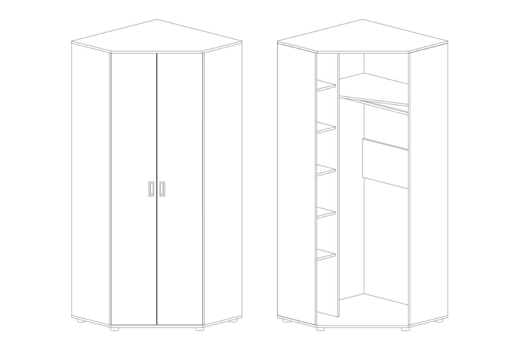 Угловой шкаф с двумя дверями