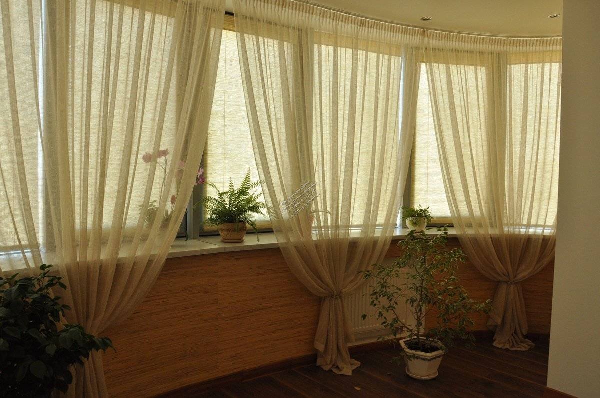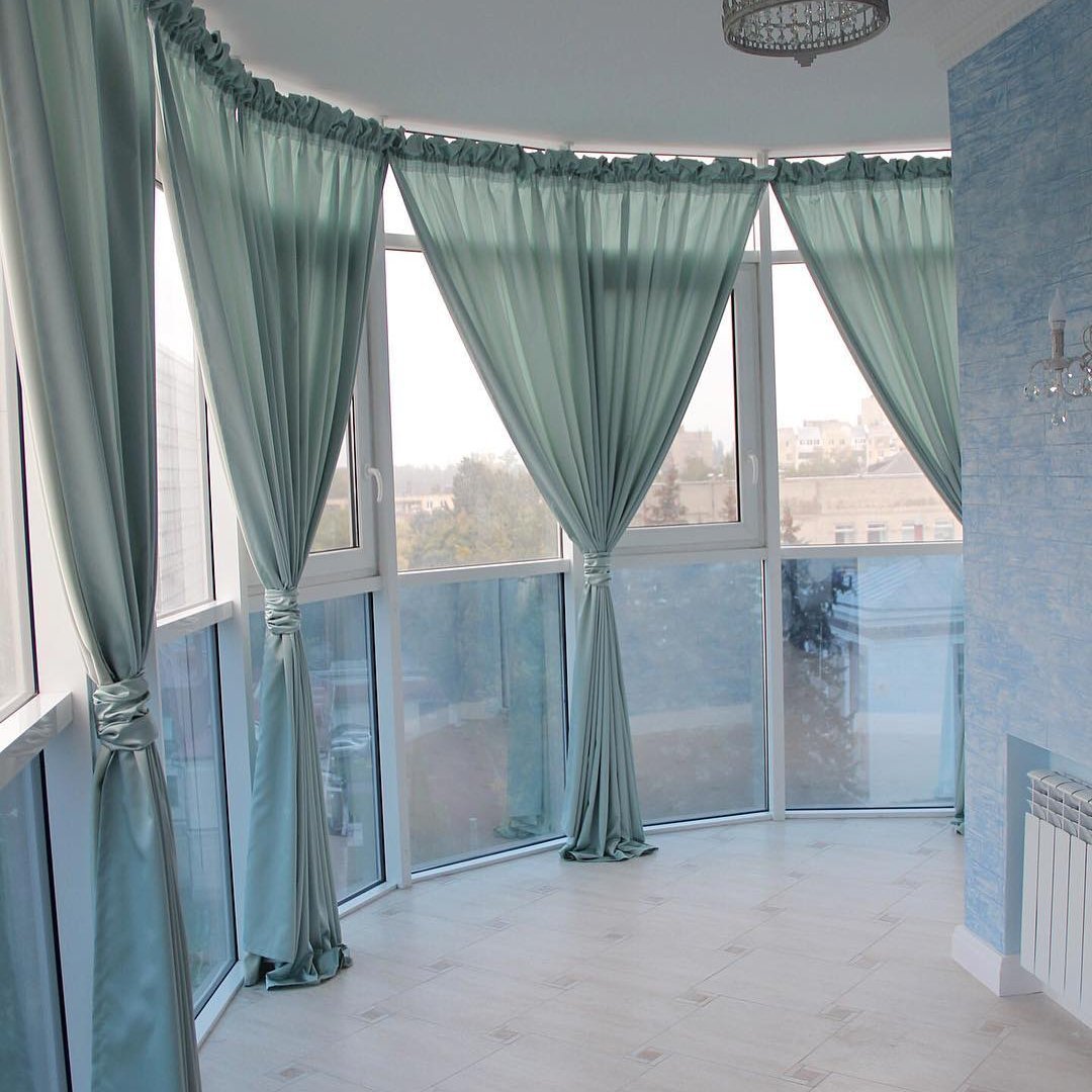 Занавески на балконе с углом