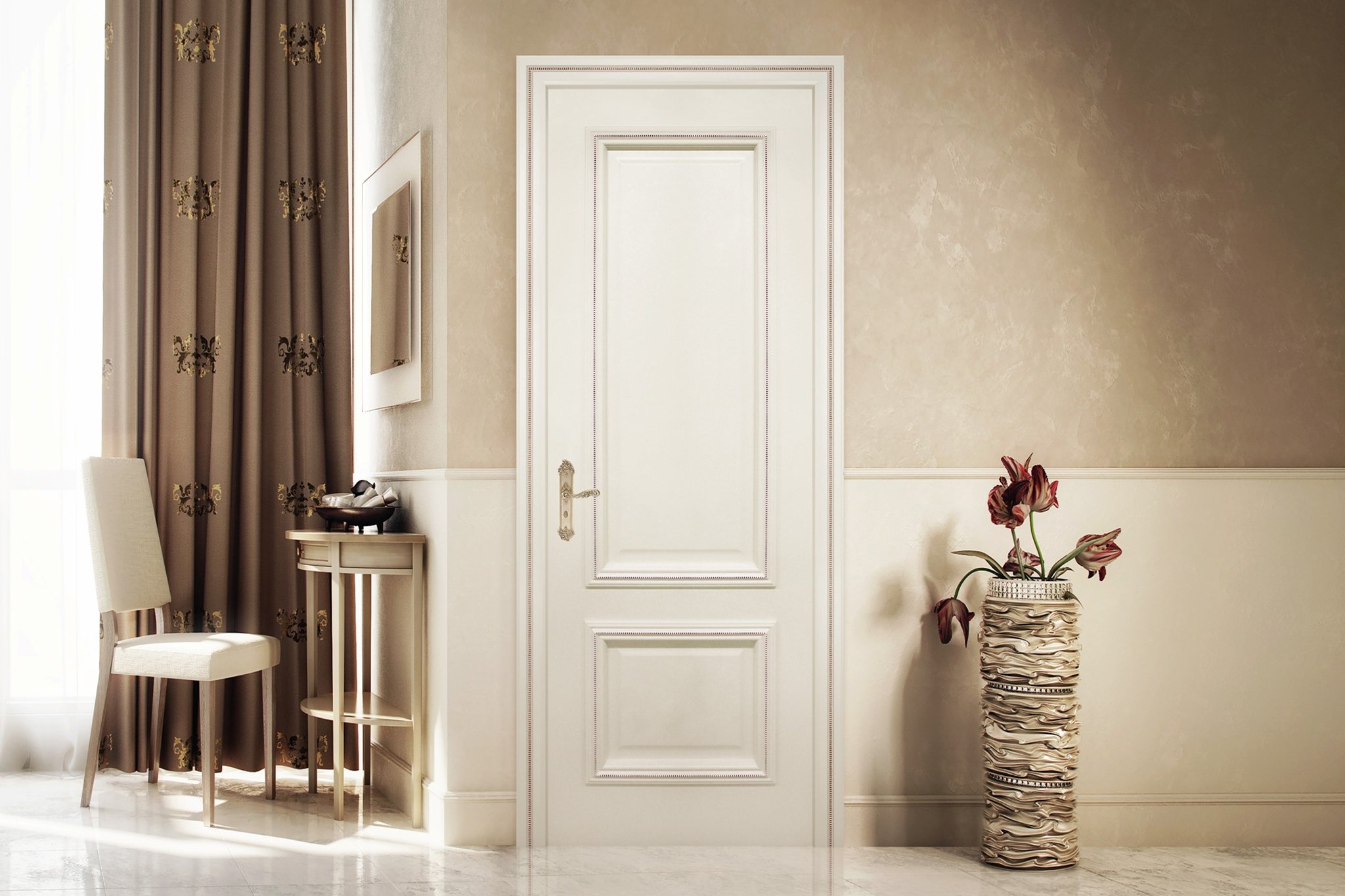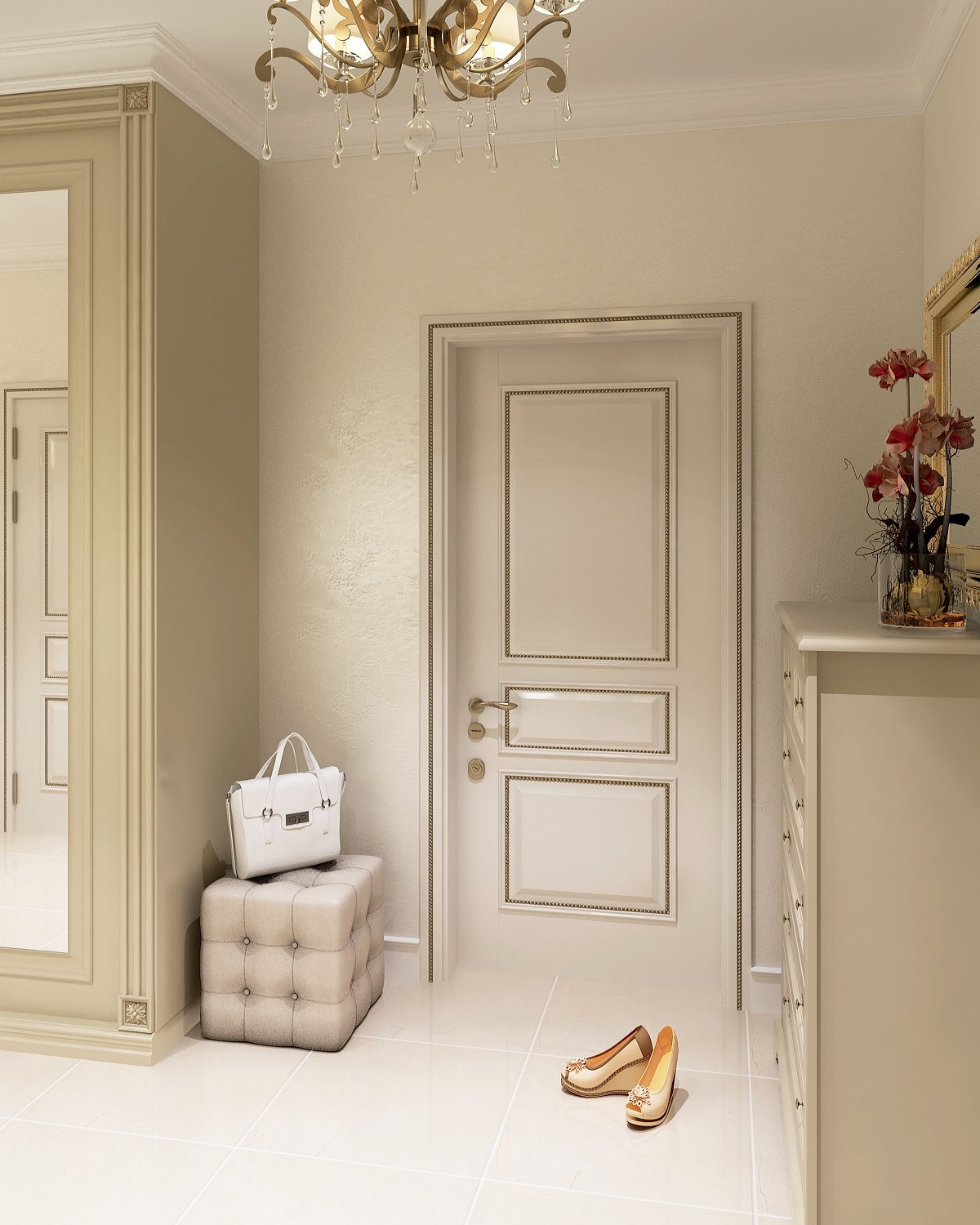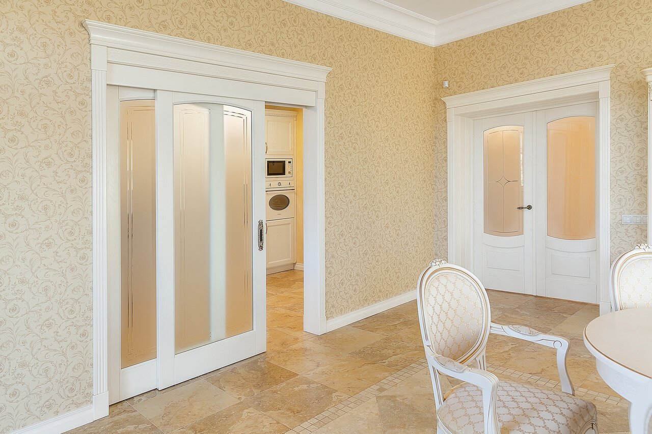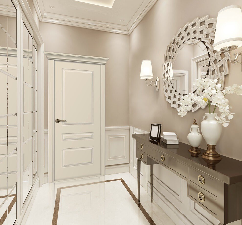 Интерьер с дверью в светлых тонах в классическом
