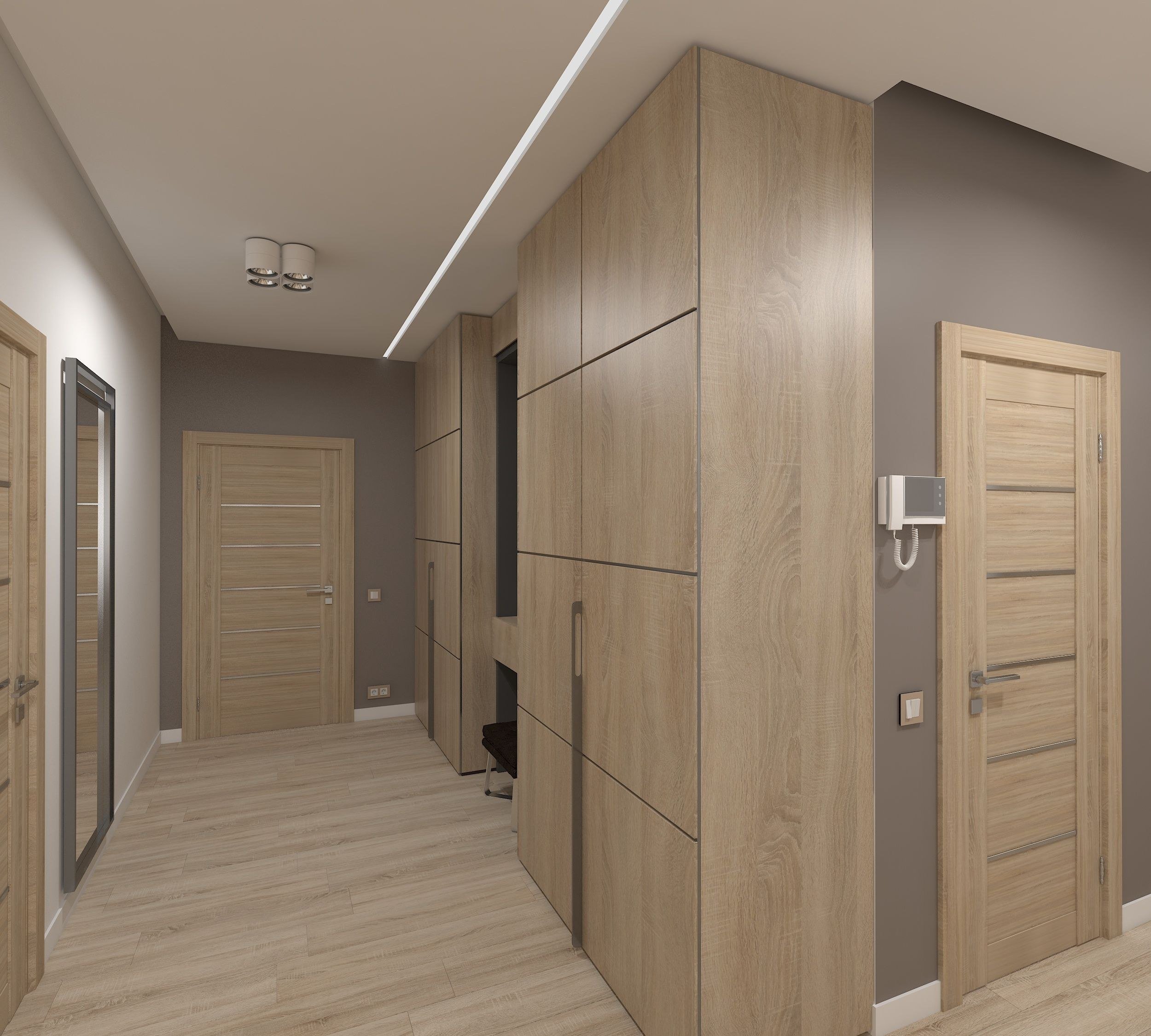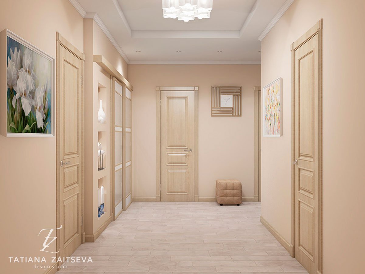 Интерьер прихожей со светлыми дверями
