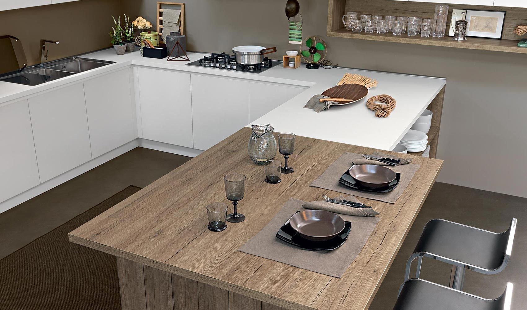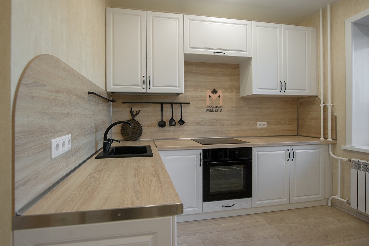 Белая кухня со столешницей дуб сонома