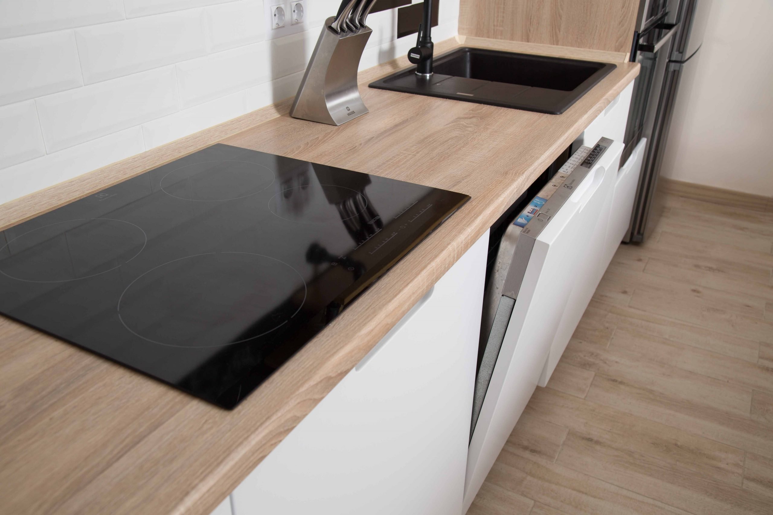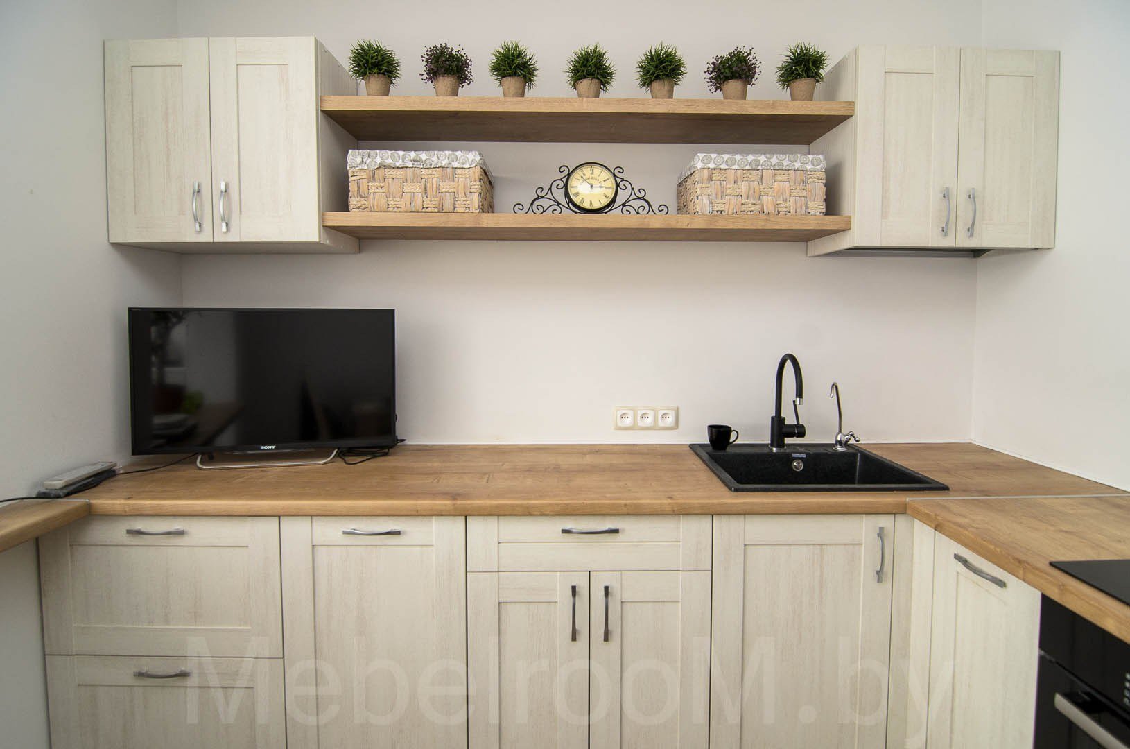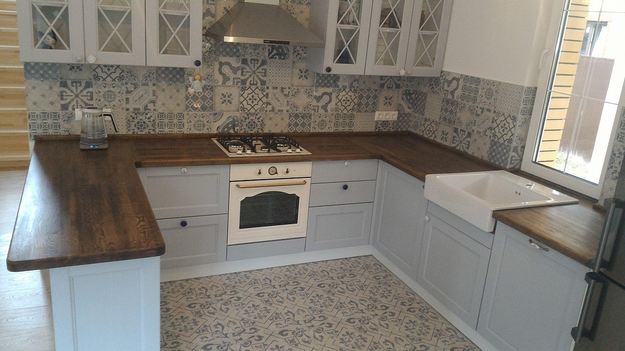Кухня с деревянной столешницей