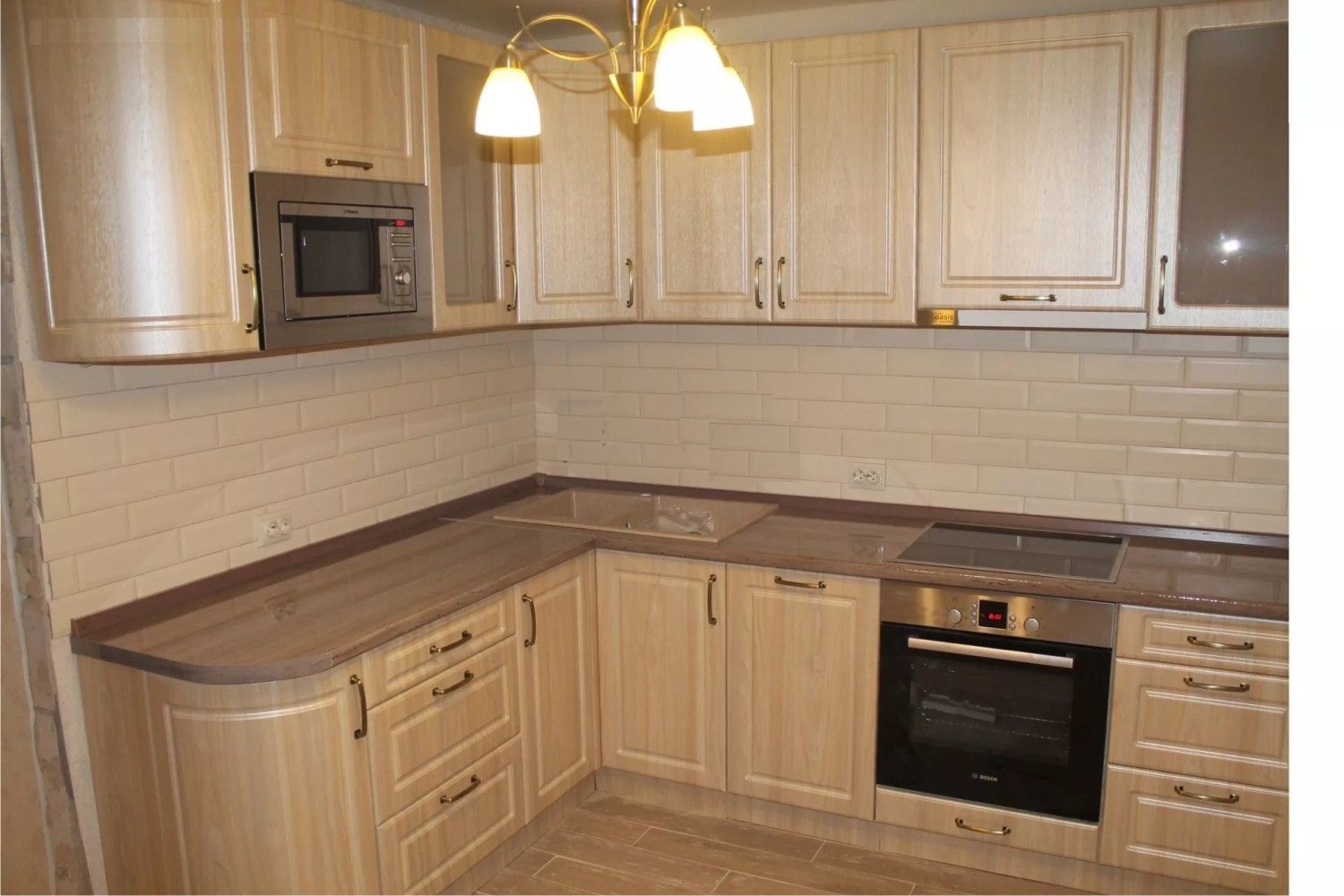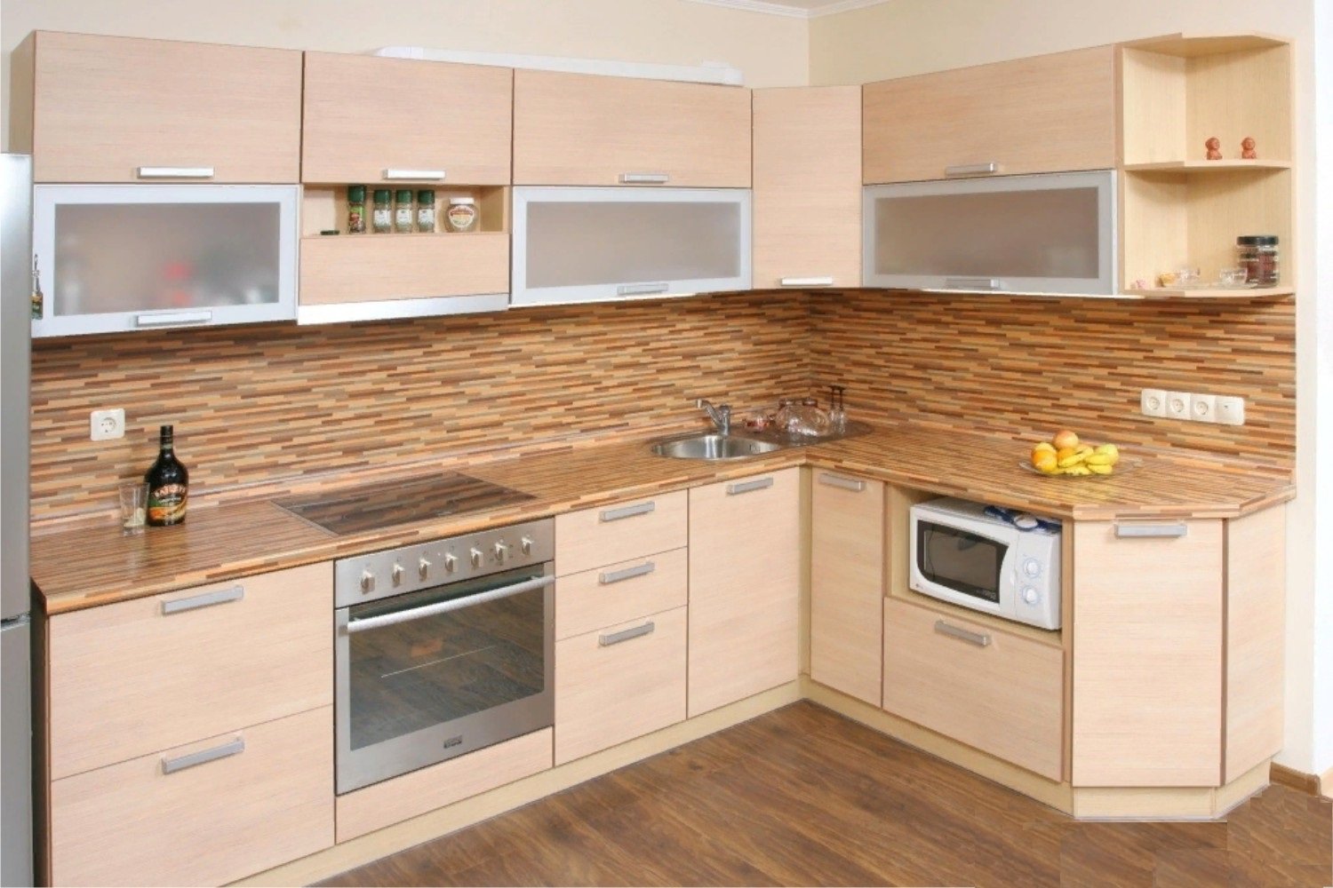 Кухонный гарнитур со столешницей под дерево