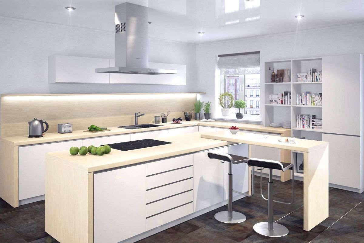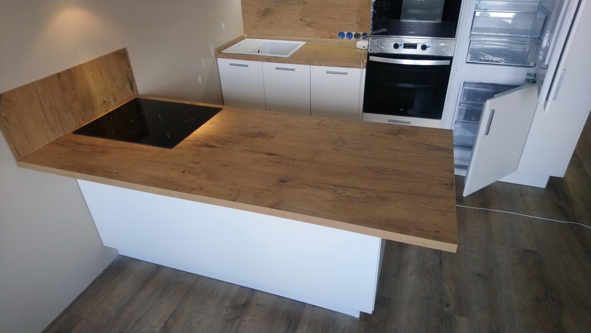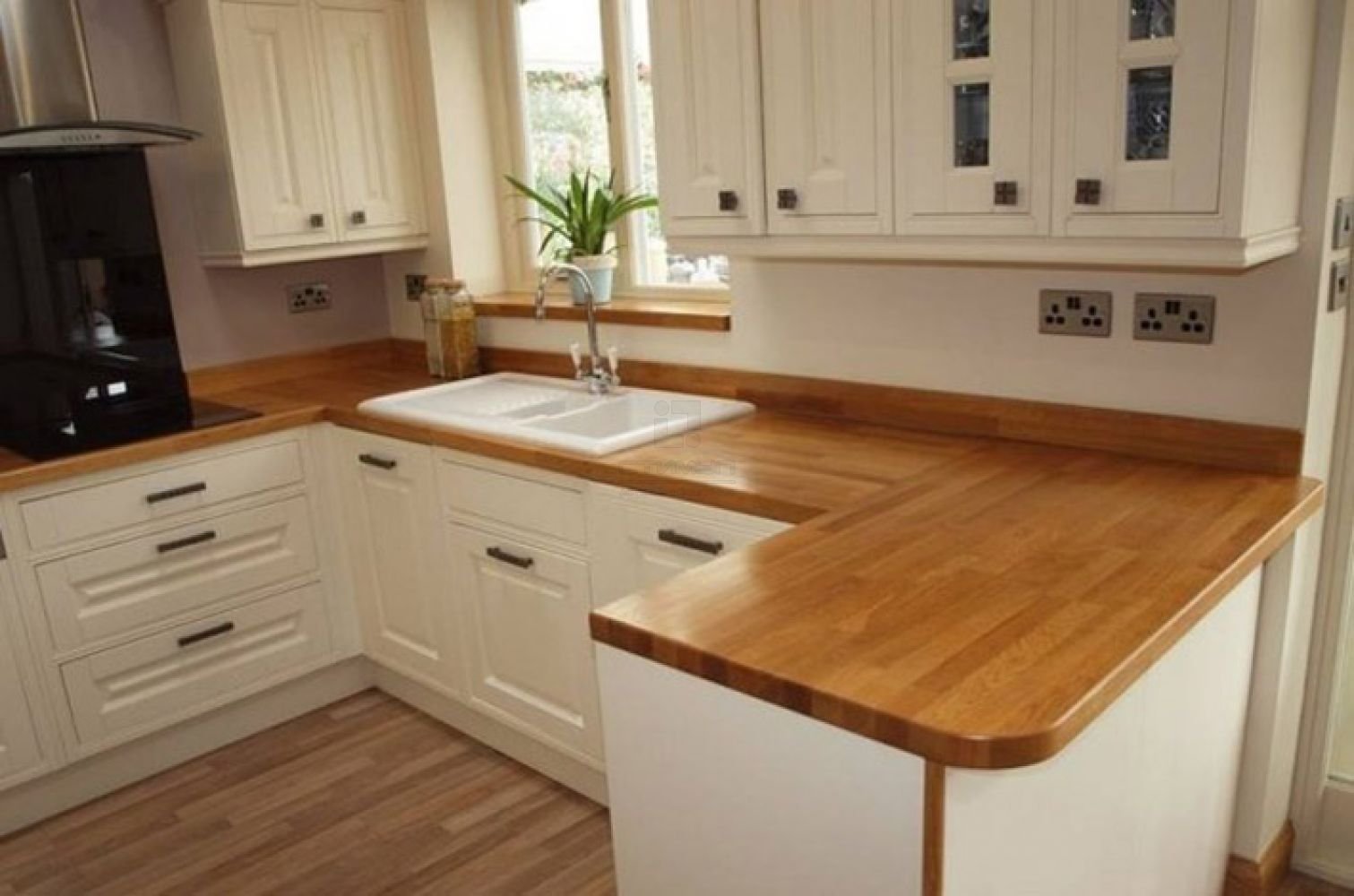 Белая кухня с деревянной столешницей
