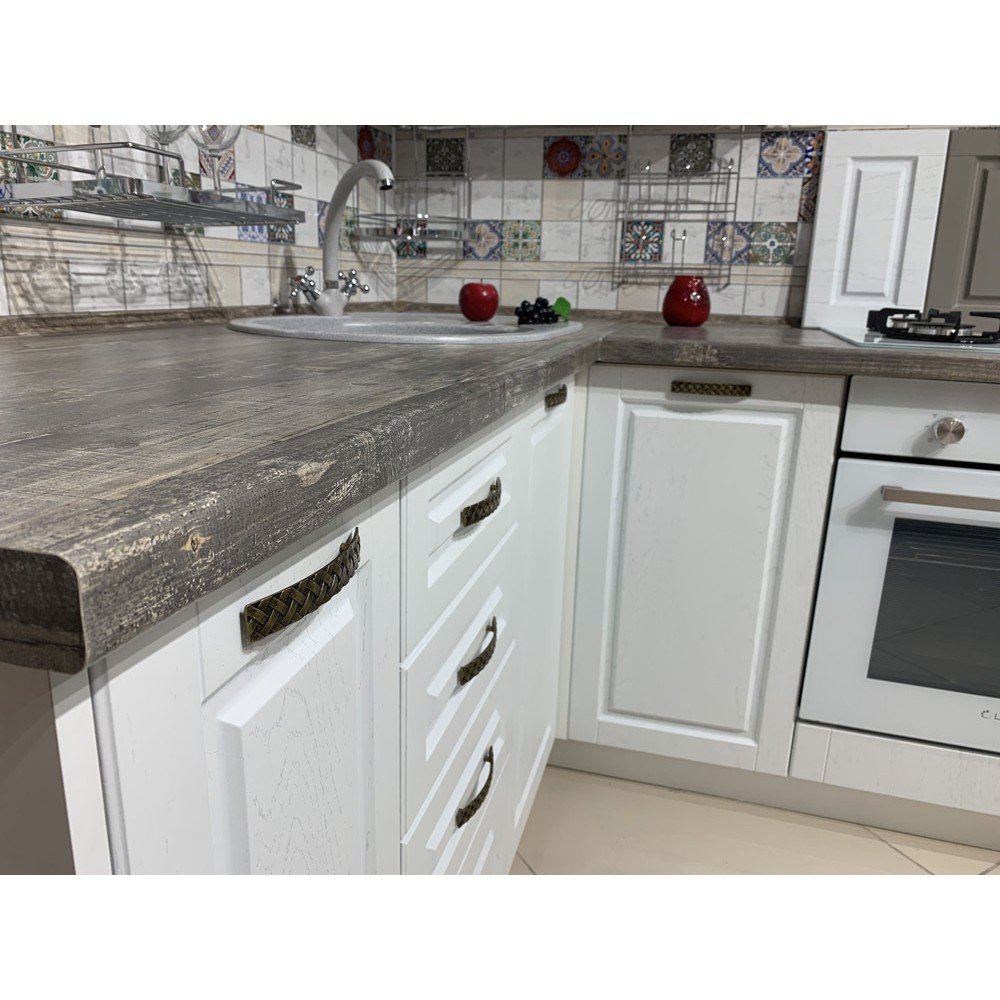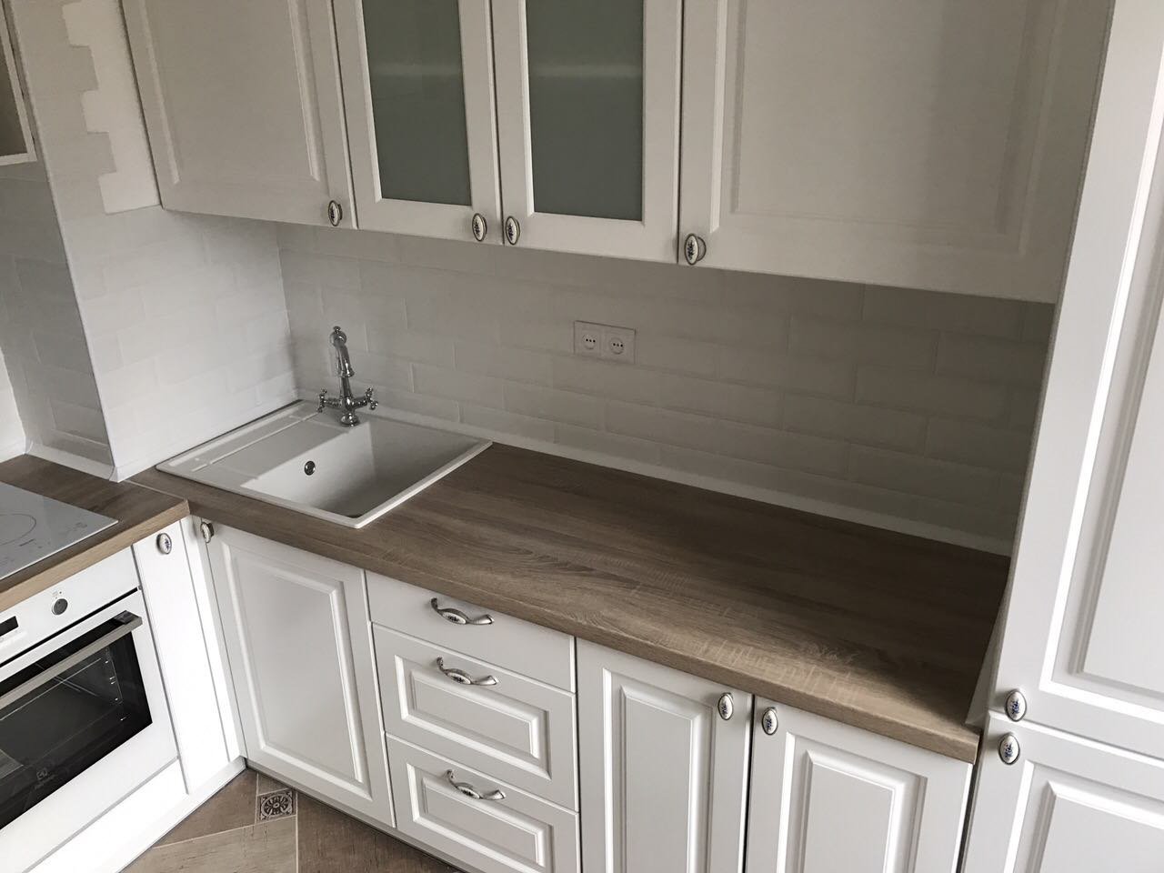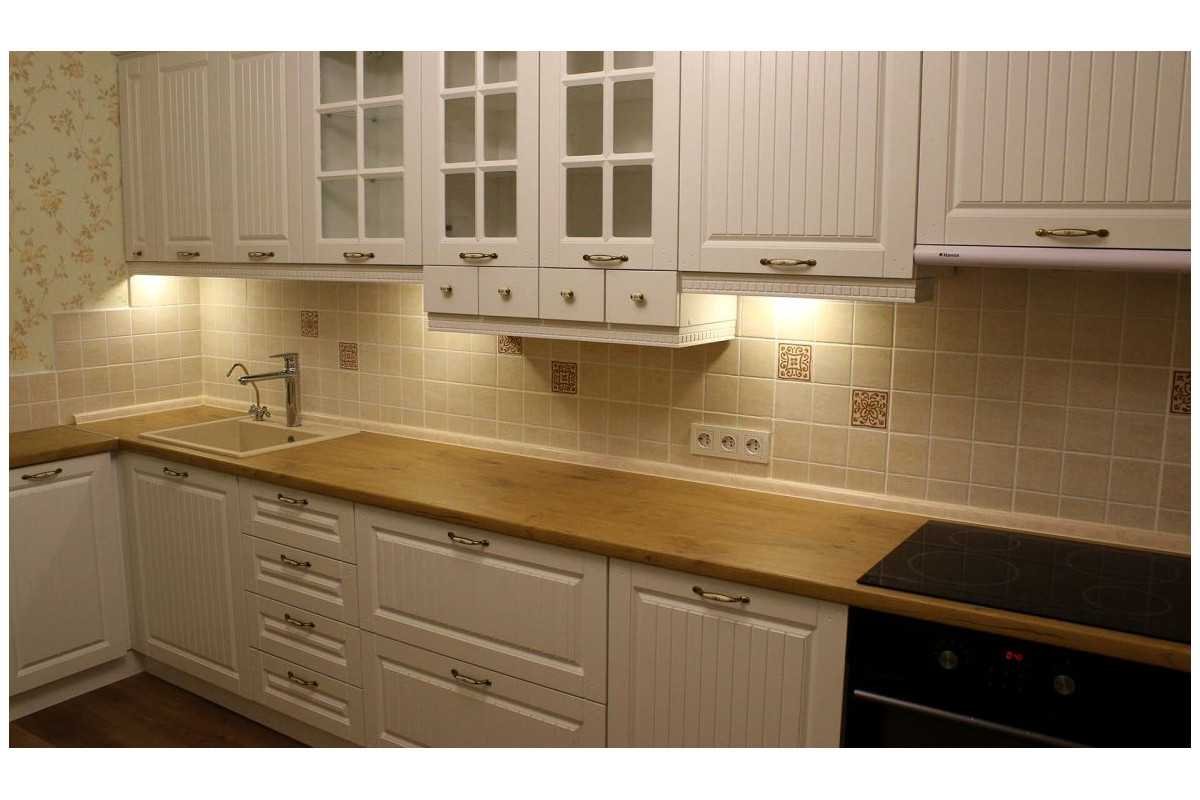Белая кухня классика с деревянной столешницей