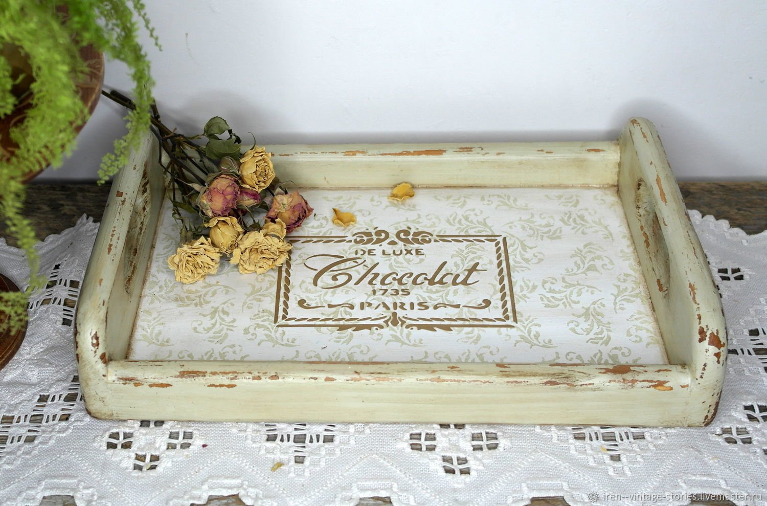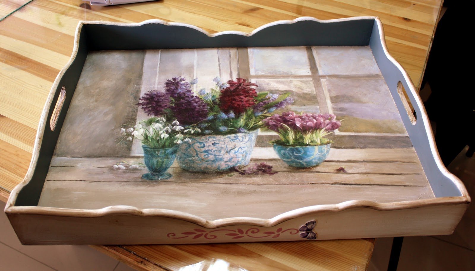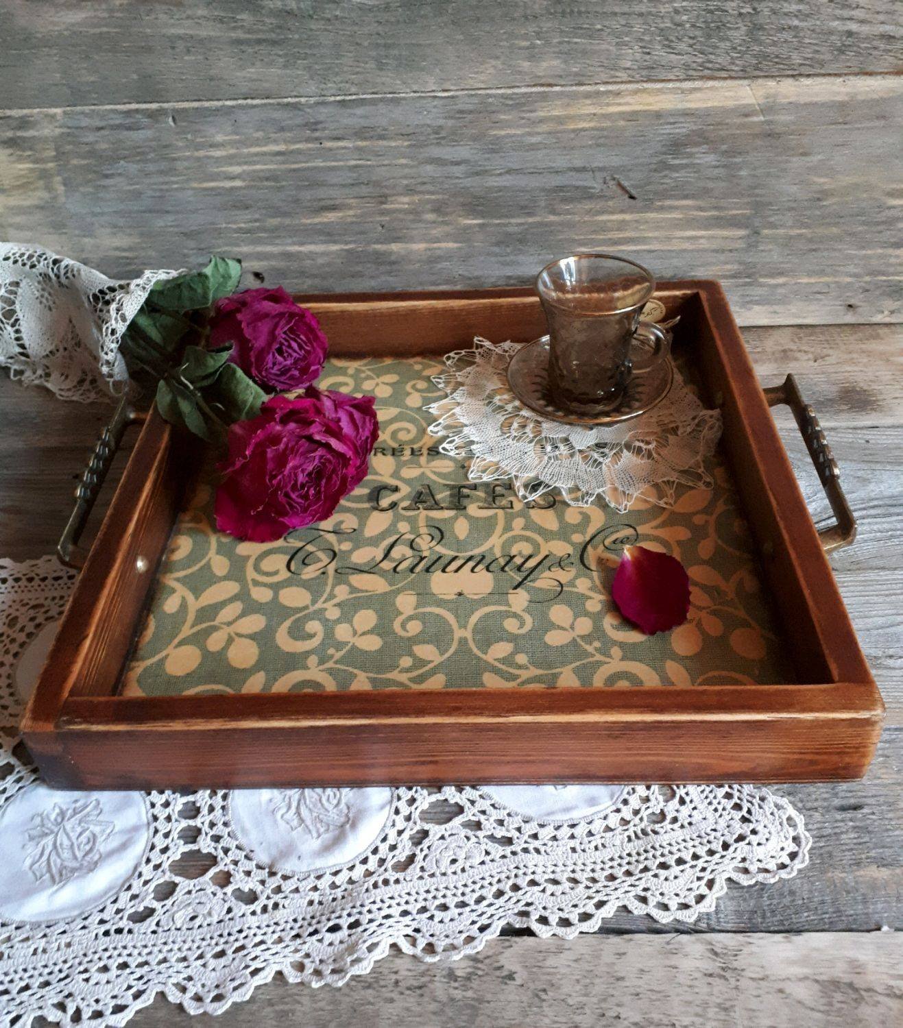 Декупаж подноса в стиле Винтаж