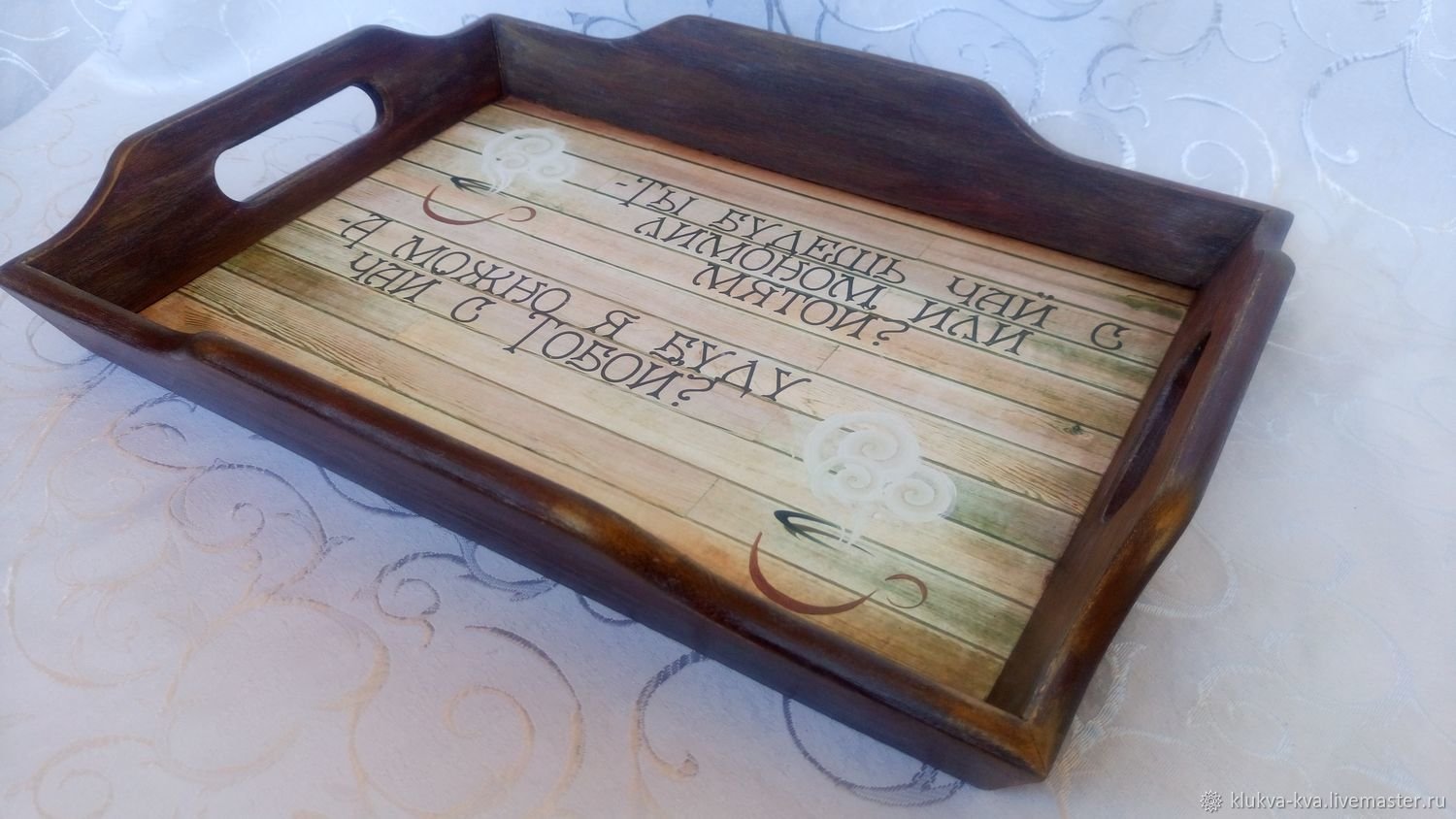 Деревянный поднос с надписью