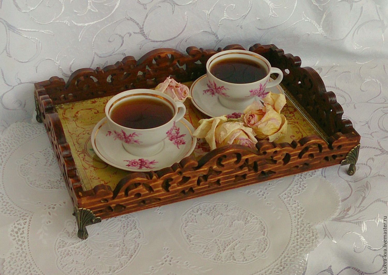 Поднос деревянный с резьбой цена