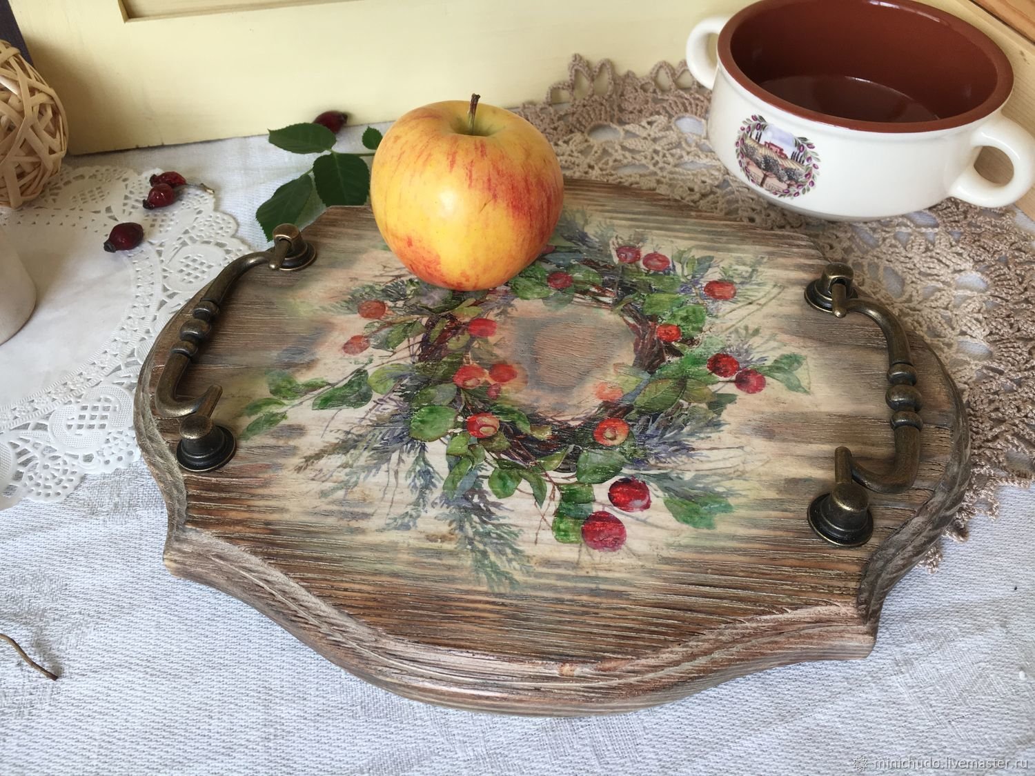 Деревянные подносы декупажные